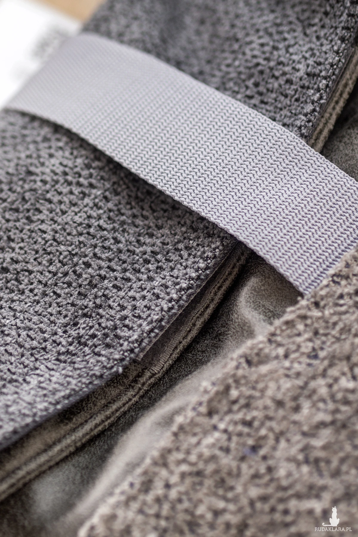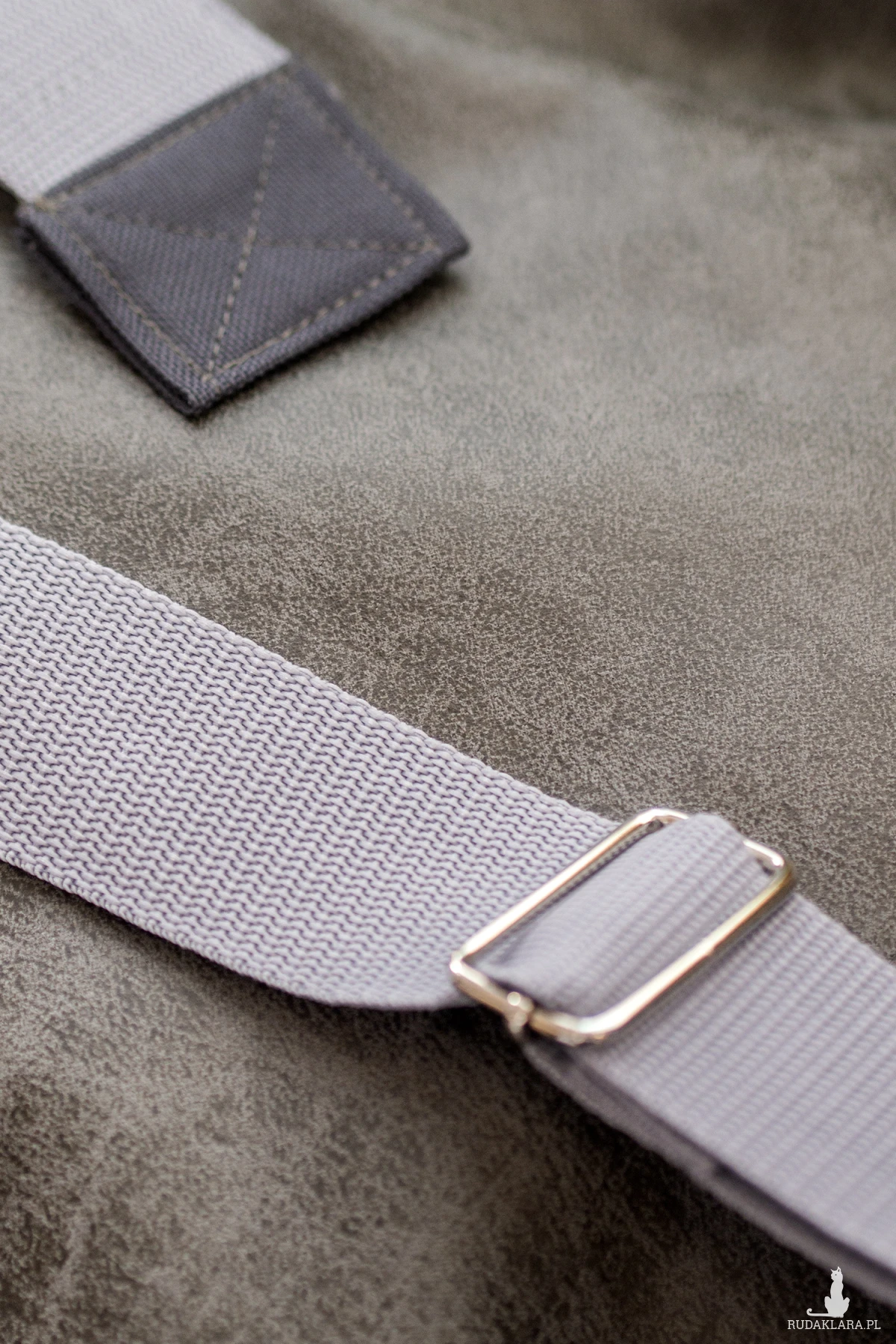 Regulowane paski. W środku czarna, bawełniana podszewka oraz mała kieszonka na suwak.