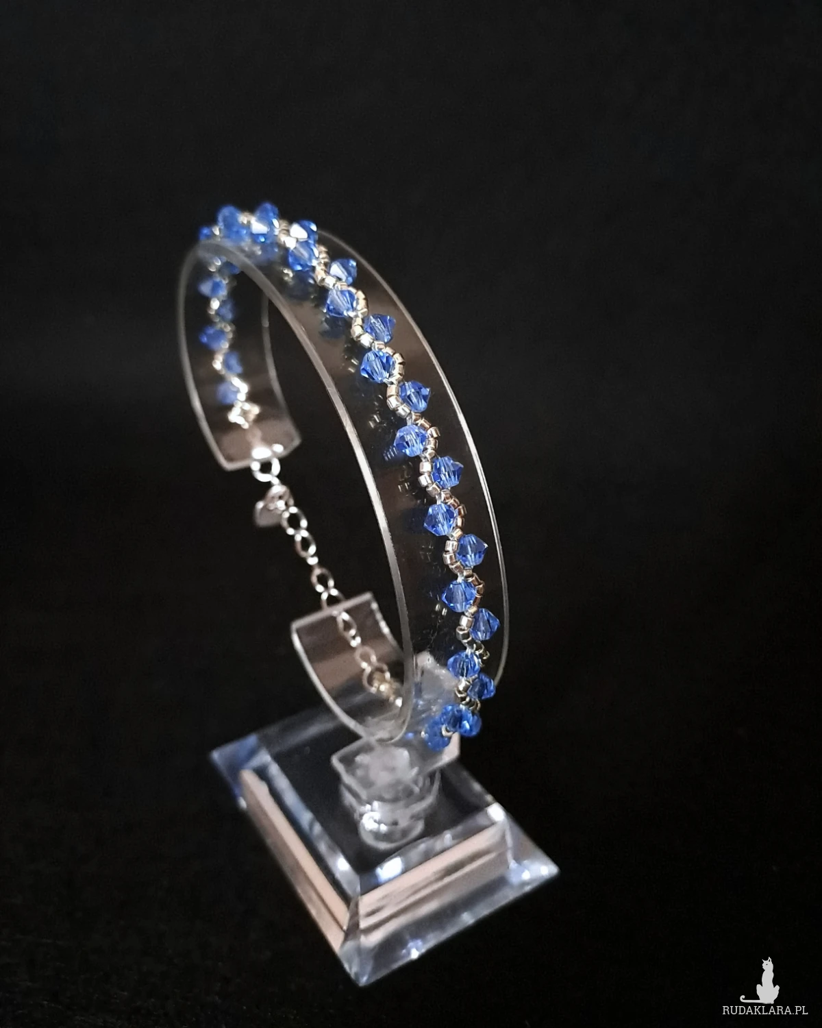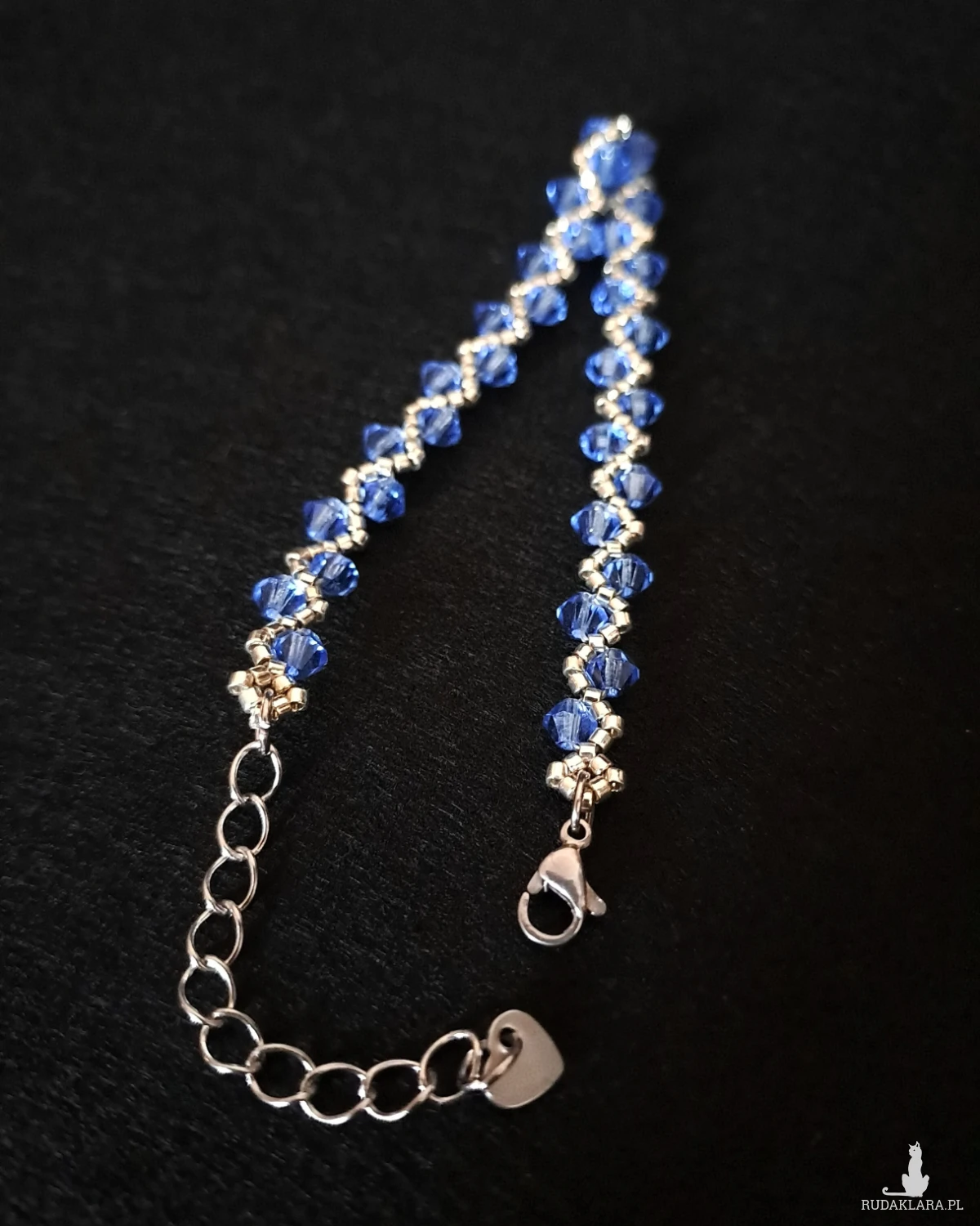 W bransoletce podstawą są koraliki Miyuki Delica, a niebieskie kryształki Preciosa nadają kompozycji niebanalny wygląd.