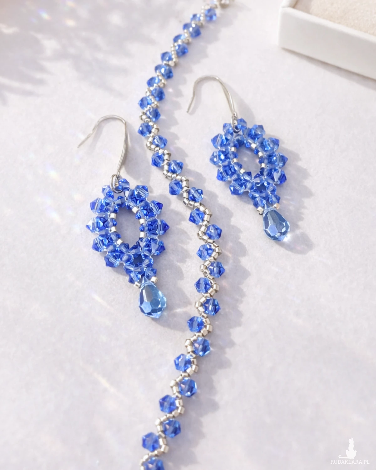 - Materiały: kryształki i łezki Preciosa, koraliki Miyuki, stal nierdzewna (hipoalergiczna)