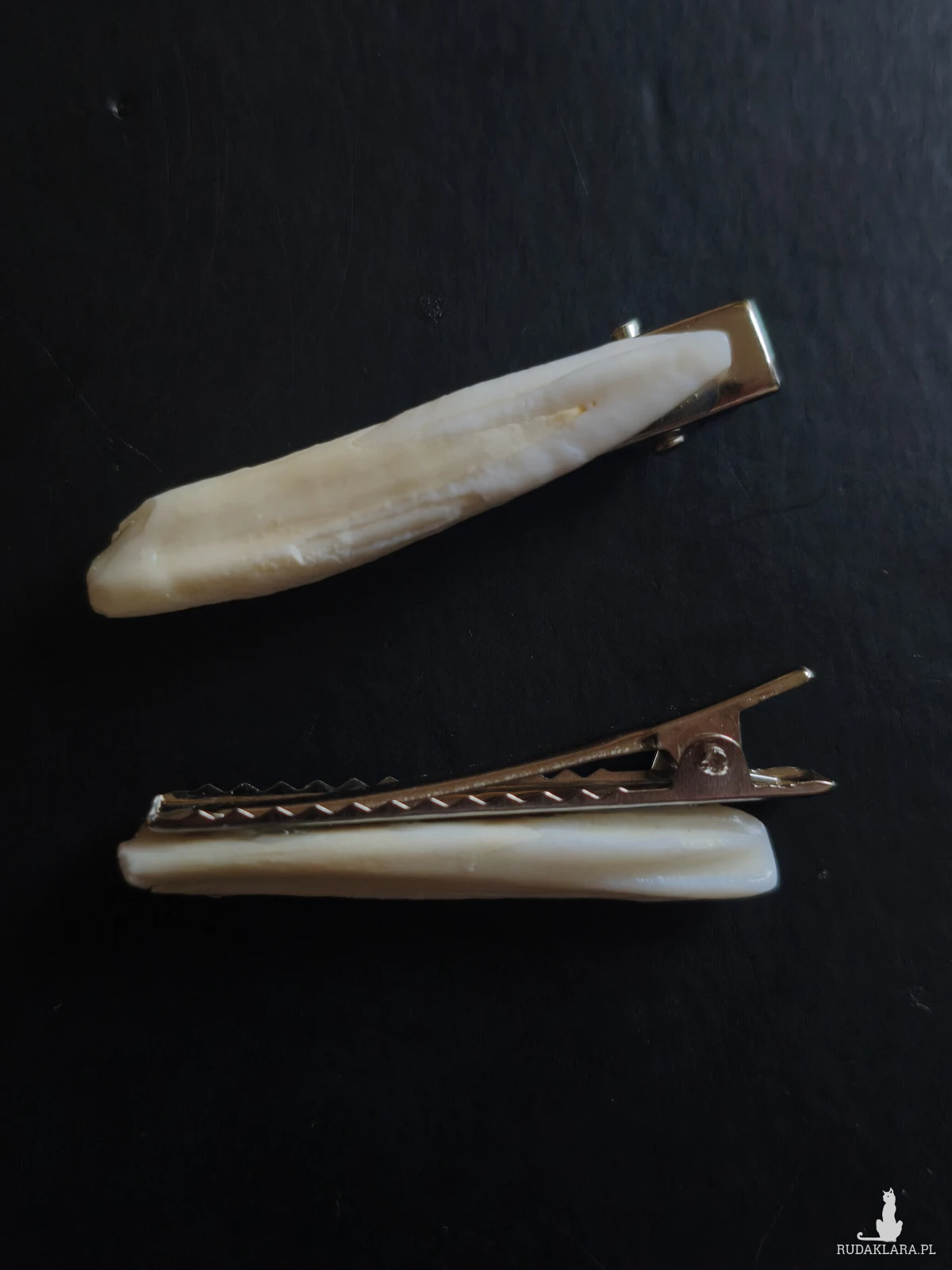 Spinki typu "krokodylki" z zębami dzika