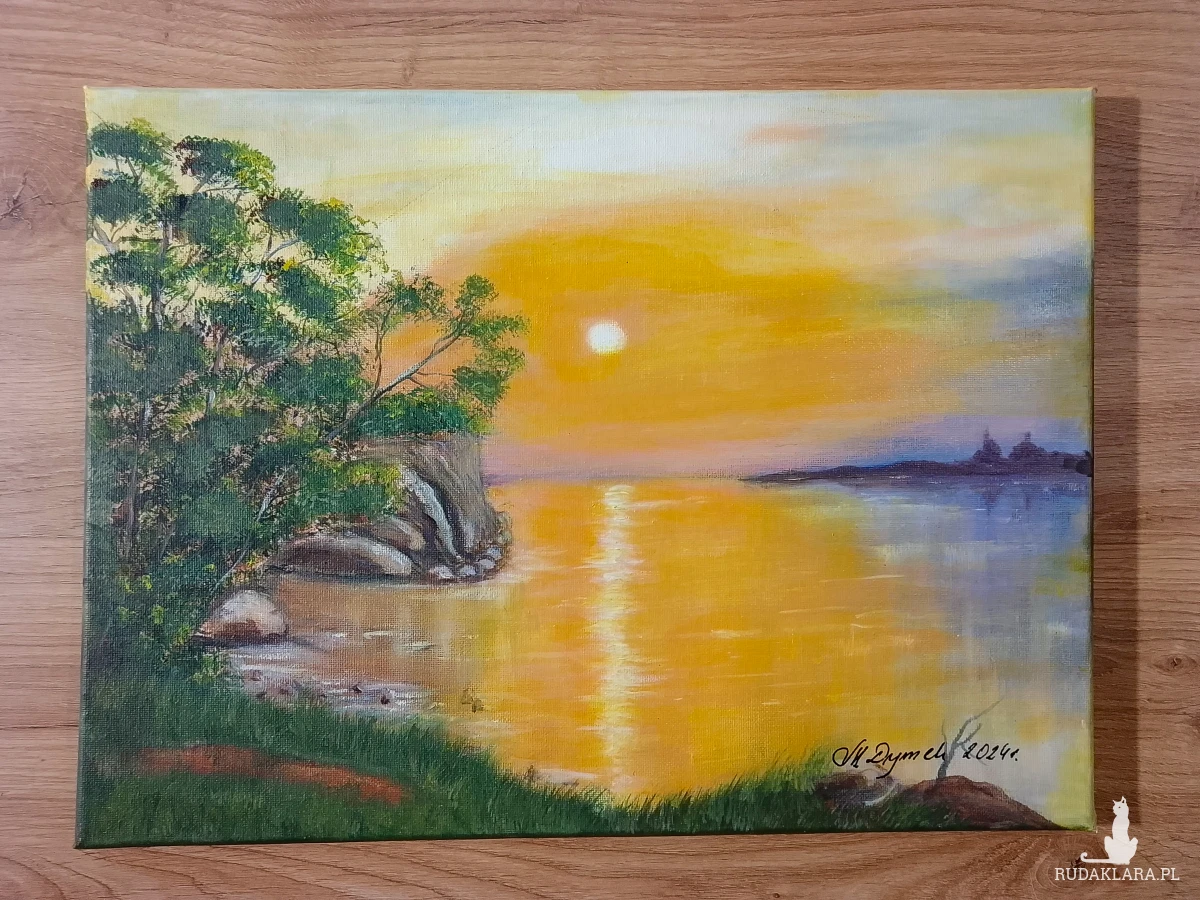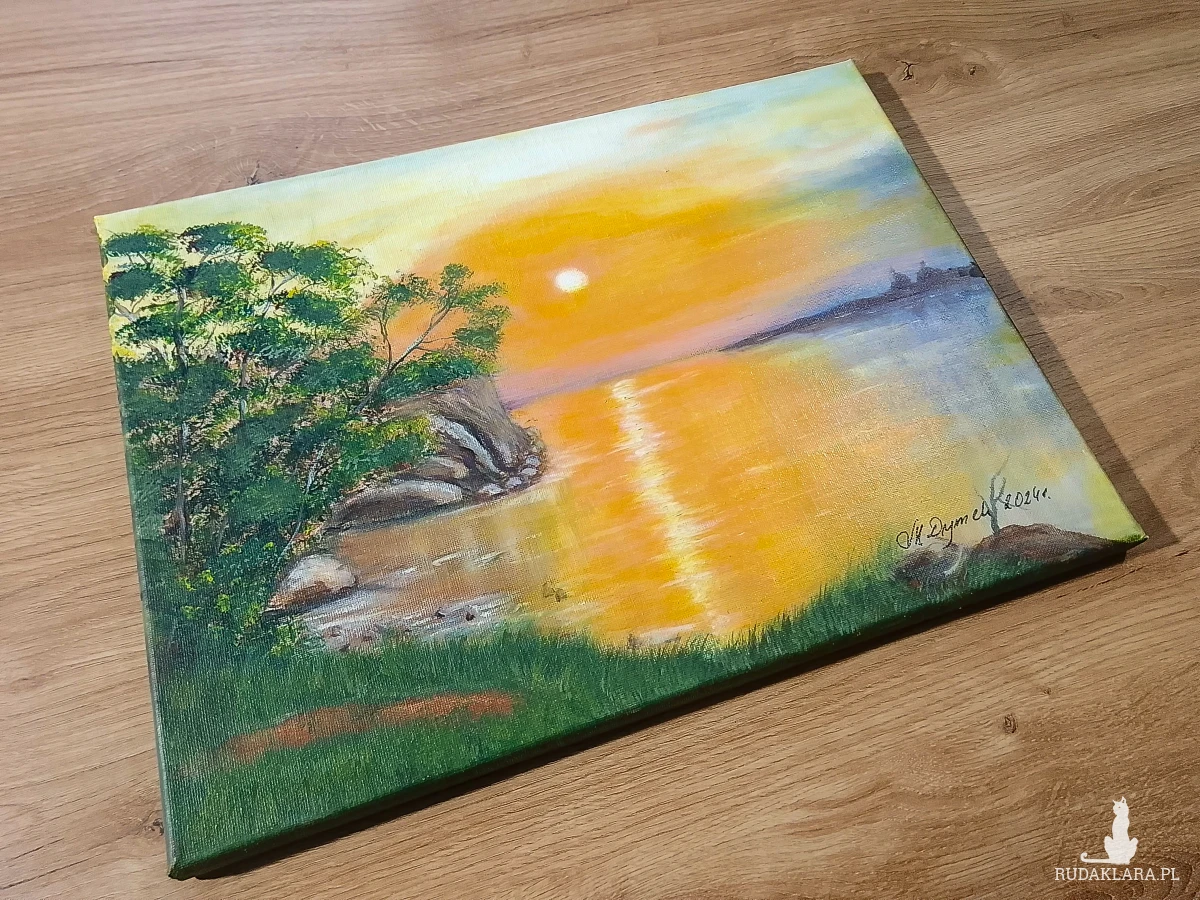- Tematyka: Polski krajobraz, zachód słońca nad wodą