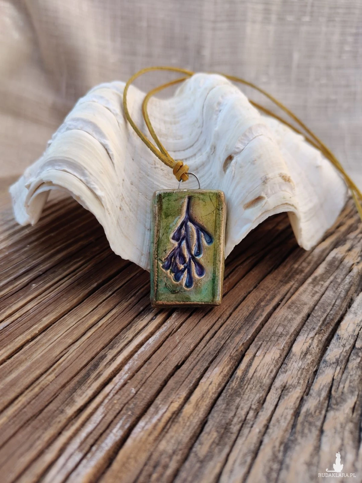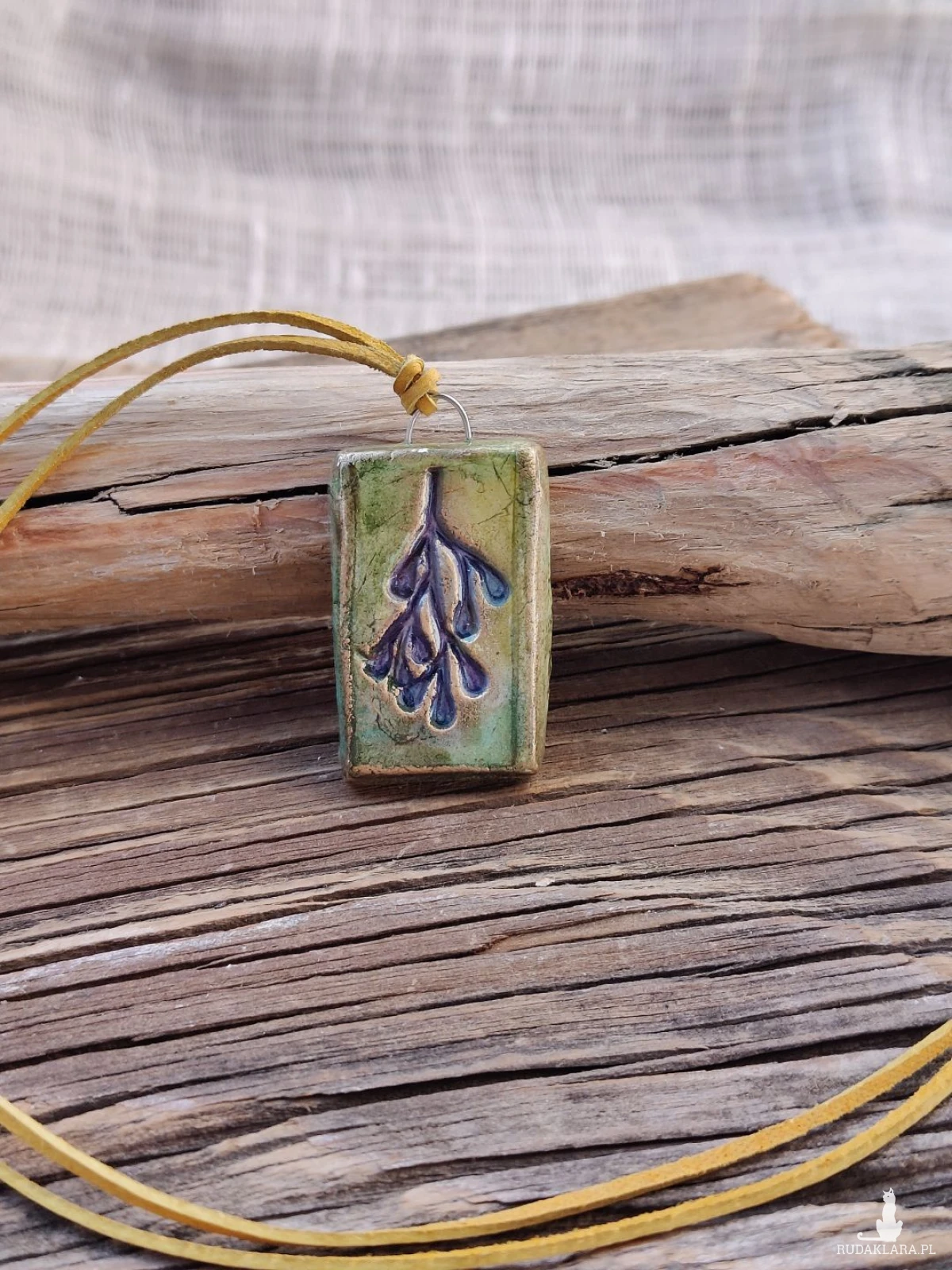 – zawieszony na naturalnym rzemyku w odcieniu jasnego brązu