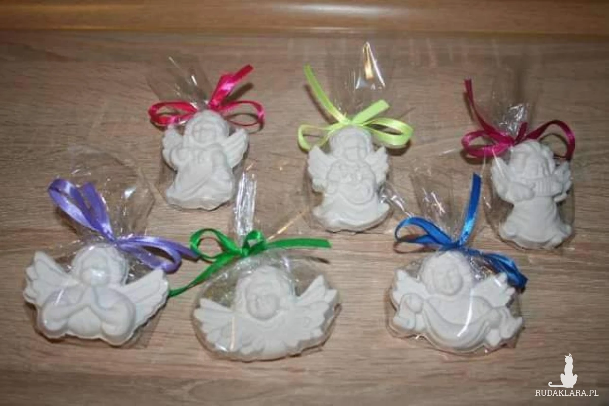 Sprzedam aniołki podziękowania dla gości z okazji chrztu, komunii. Wielkość ok 5x7 cm. Każda figurka zapakowana w celofan i związana wstążka. Wzór oraz kolor wstążki do wyboru.