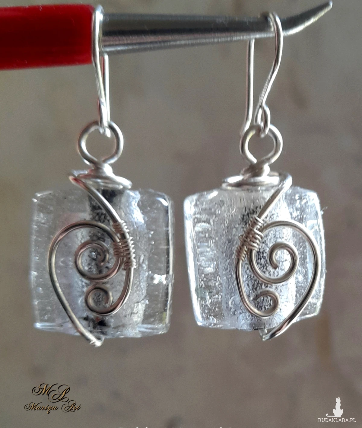 Dodaj odrobinę elegancji do swojej stylizacji dzięki tym wyjątkowym kolczykom wykonanym z autentycznego szkła weneckiego. Każdy element został ręcznie opleciony miedzianym drutem powlekanym, tworząc piękny, spiralny wzór, który przyciąga wzrok.