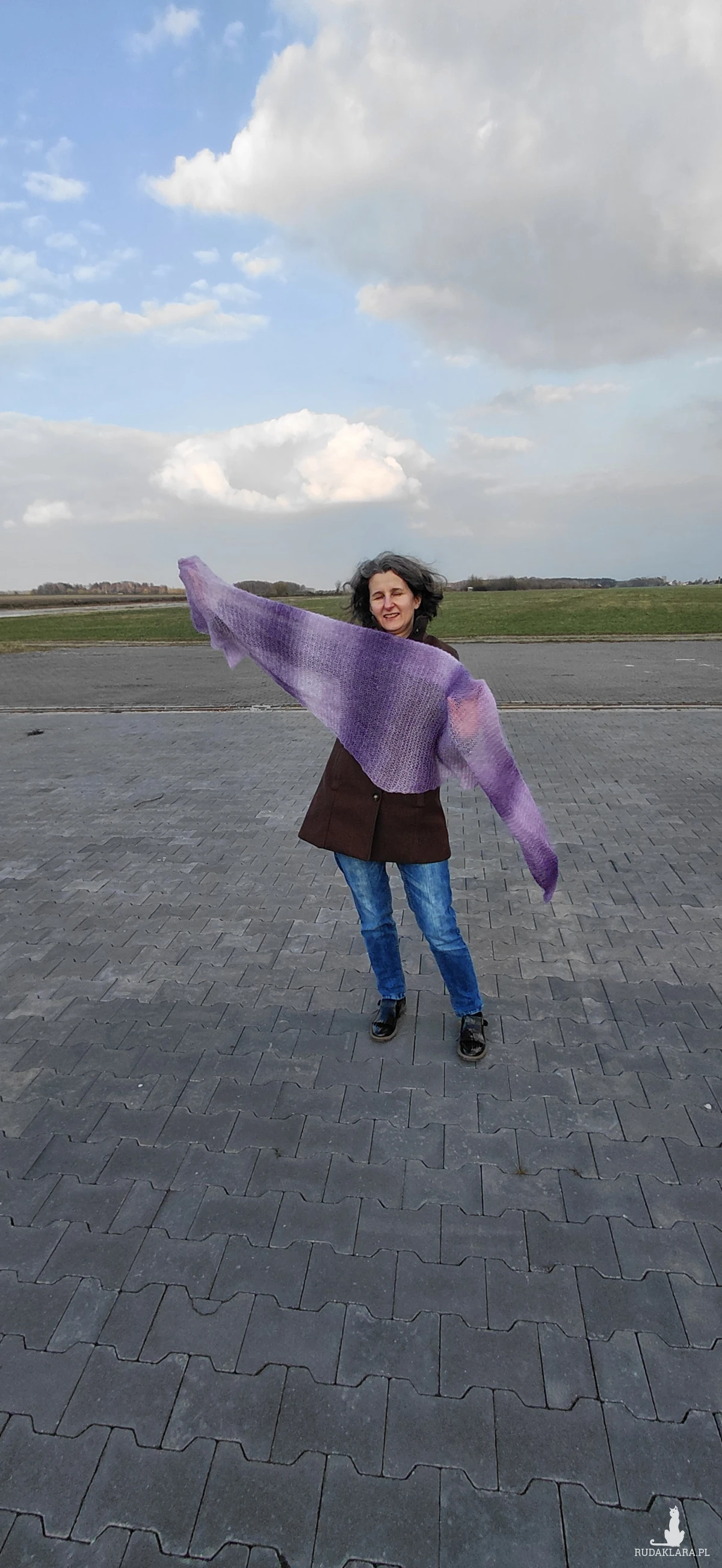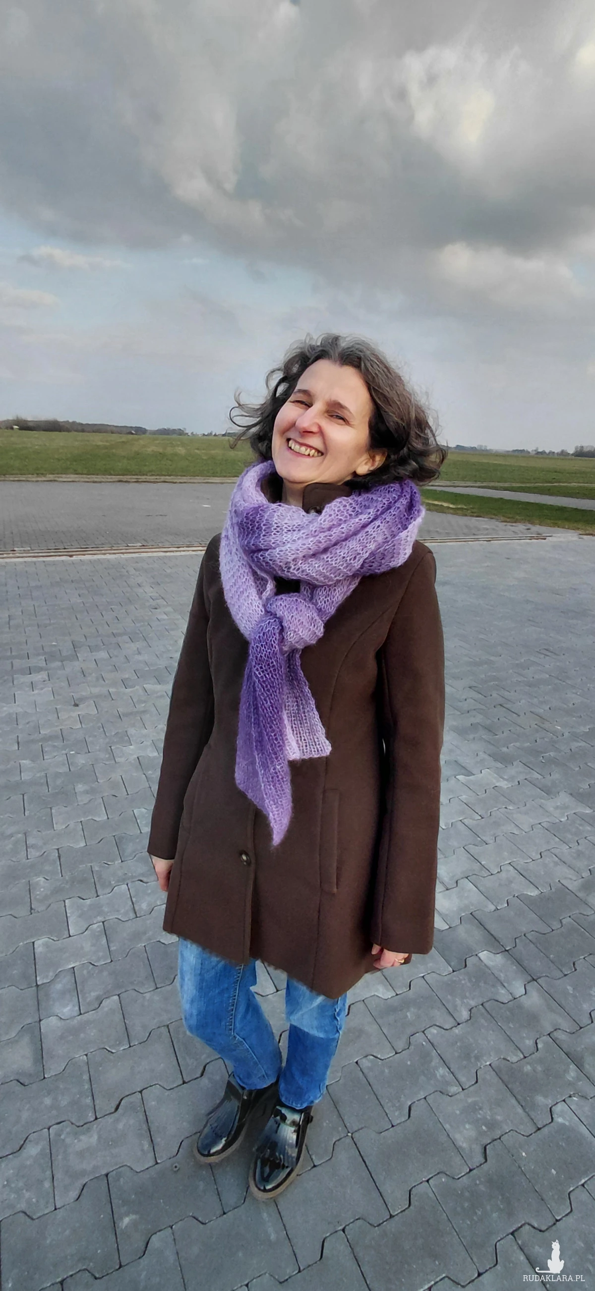 Szal wykonany na drutach. Długi- ok 180-200 cm. Wełna 65%, moher 25%, bawełna 10%. Przeznaczony na wiosnę i jesień. Pranie w pralce- program Wełna w woreczku na bieliznę.