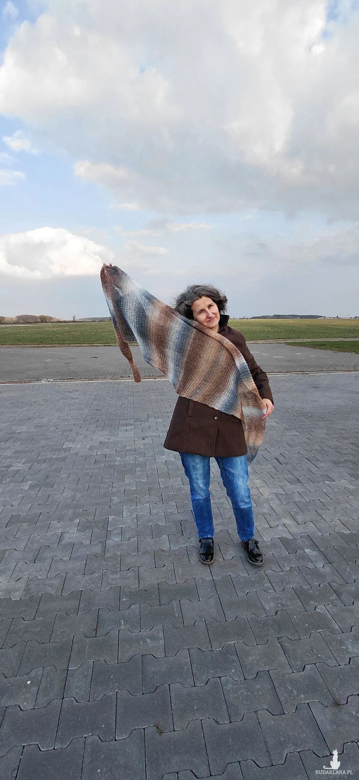 Szal chmurka. Wykonany na drutach. 65% wełna, 25% moher, 10% bawełna.