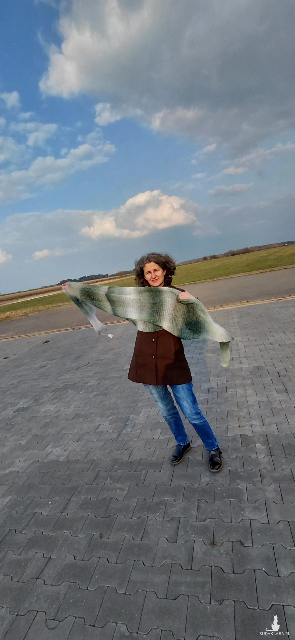 Szal wykonany na drutach. 65%wełna, 25% moher, 10% bawełna.