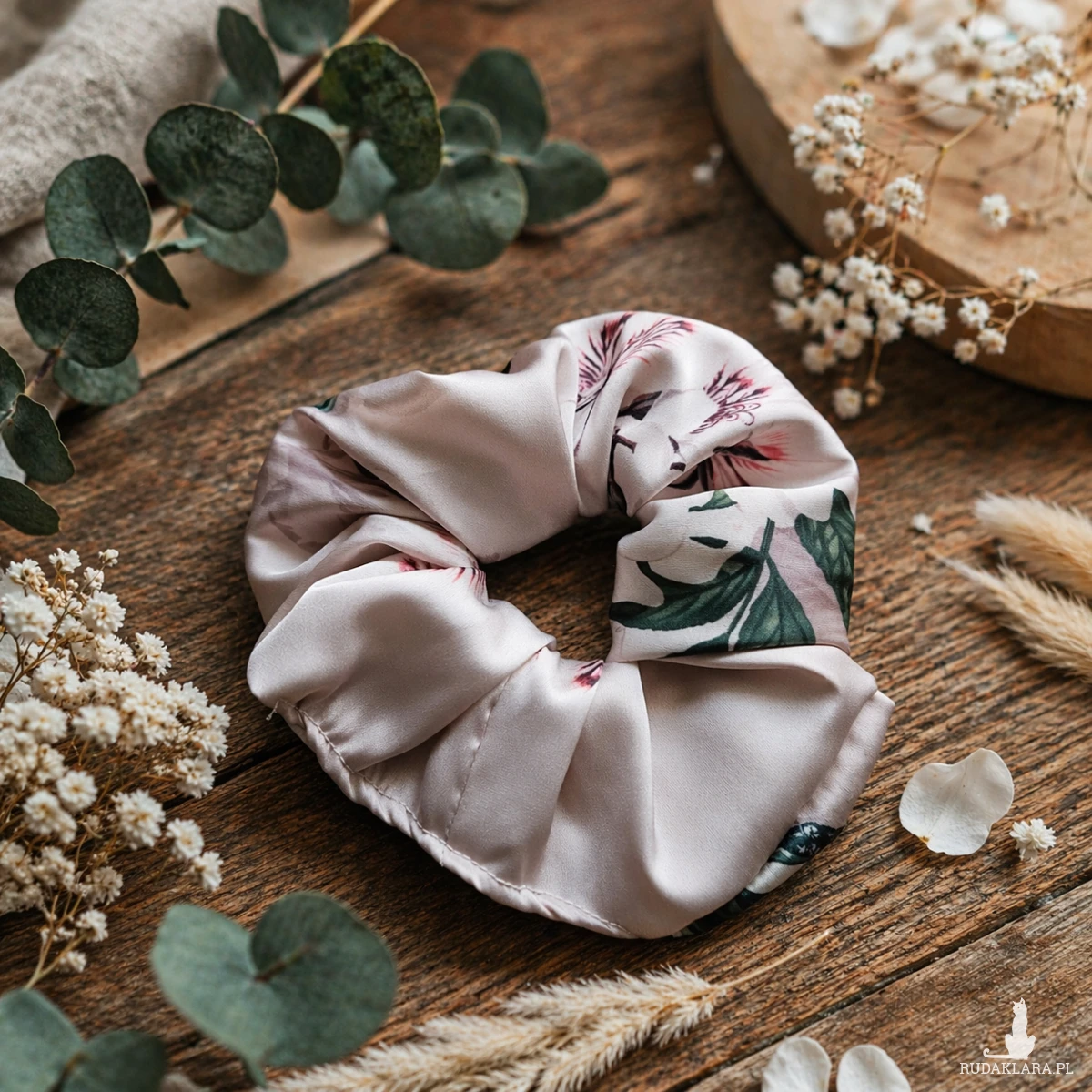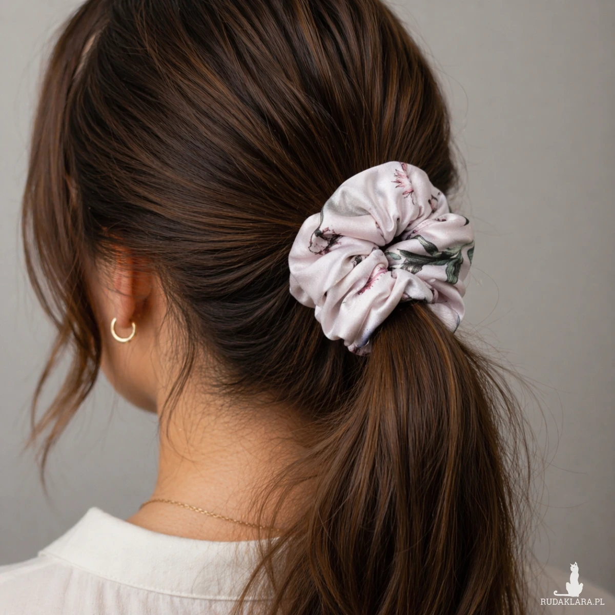Satynowa gumka do włosów w piękne wzory to elegancki i praktyczny dodatek, który zadba o Twoje włosy każdego dnia. Wykonana ręcznie z delikatnej, gładkiej satyny, jest przyjazna dla włosów – nie ciągnie, nie łamie i nie powoduje odgnieceń, podobnie jak jedwabne akcesoria.