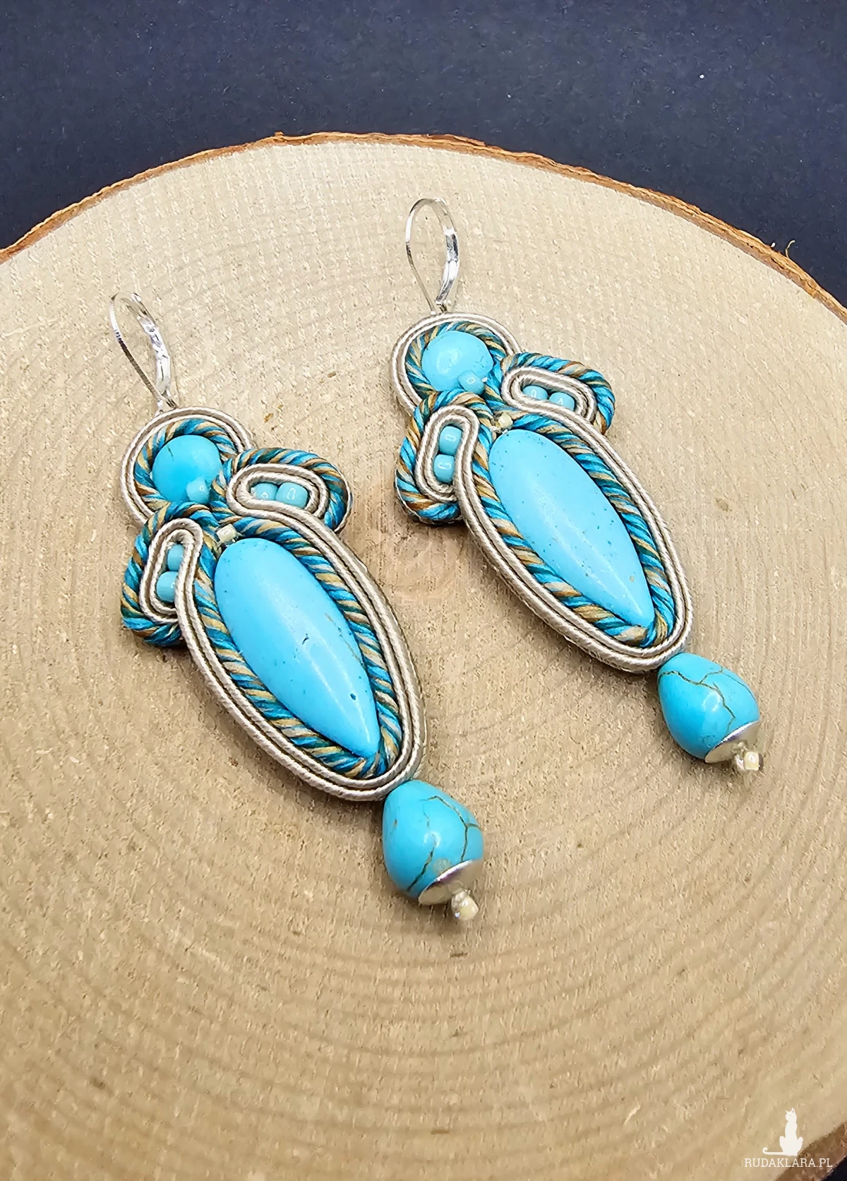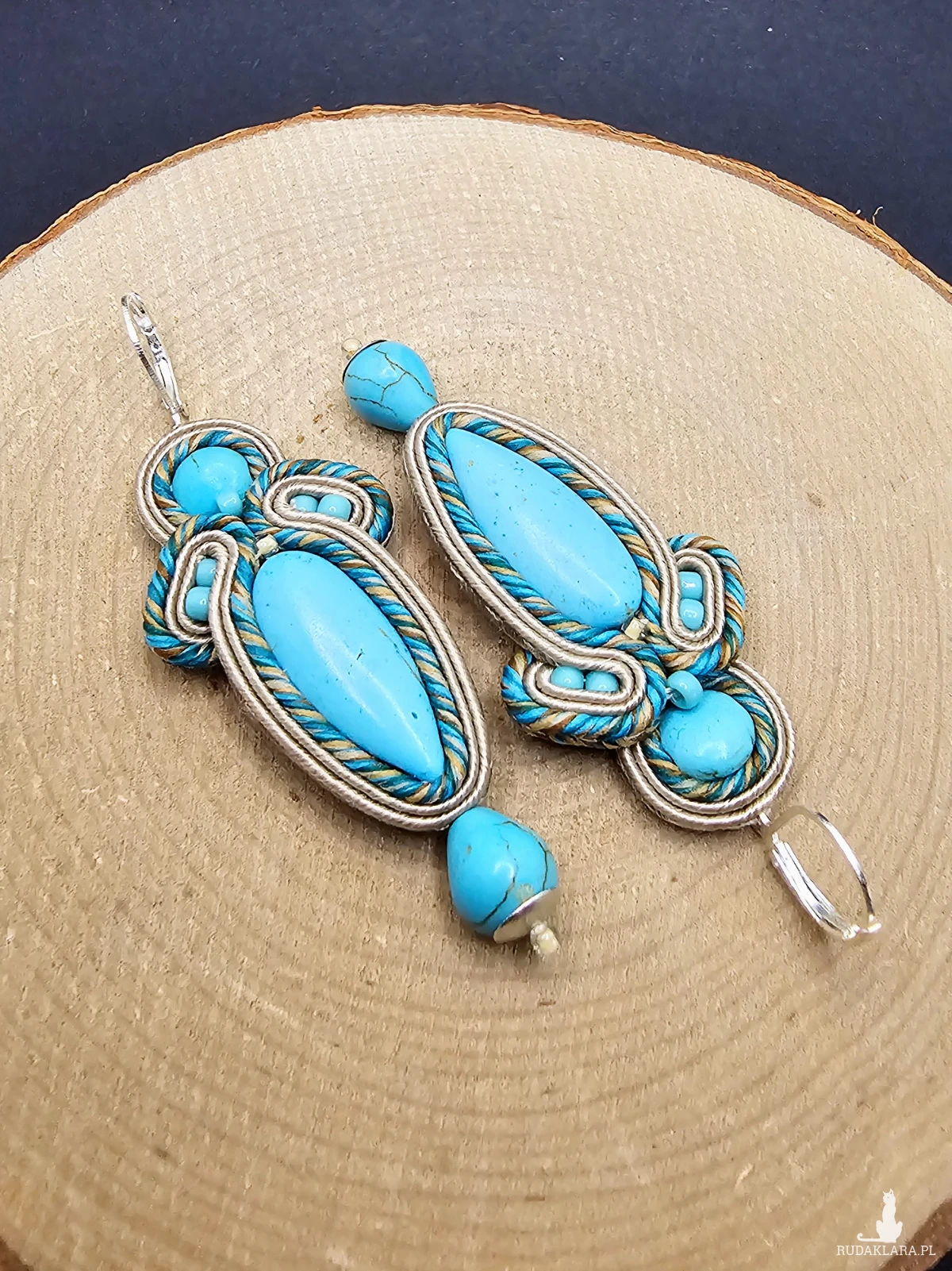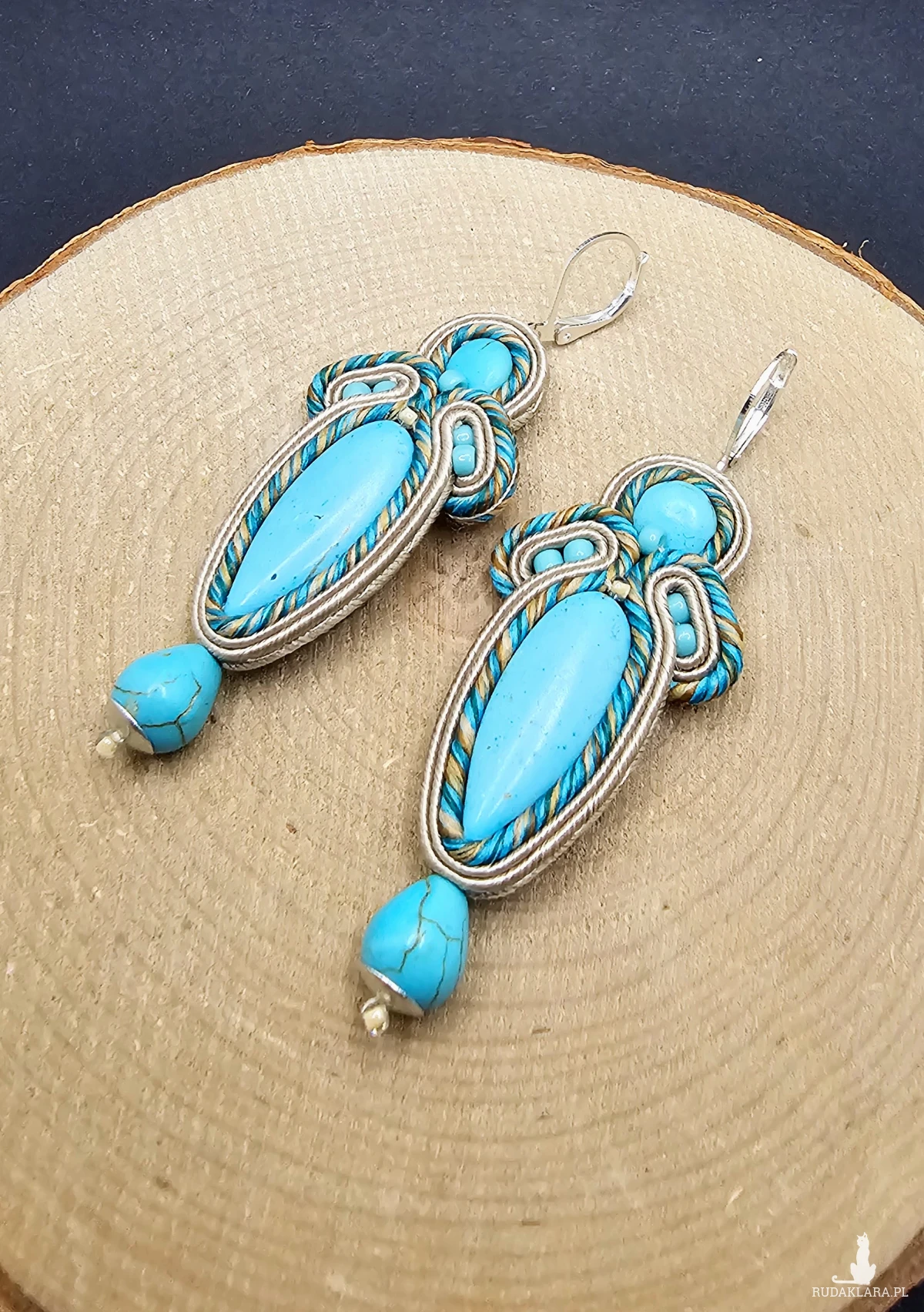 beżowo-turkusowe kolczyki sutasz z howlitem
