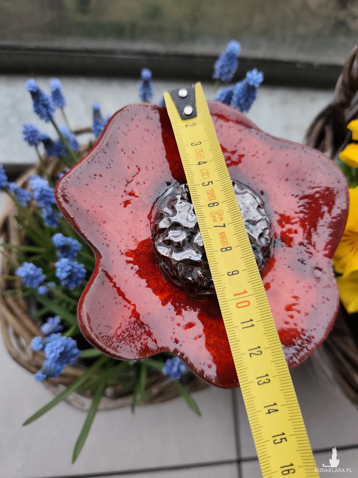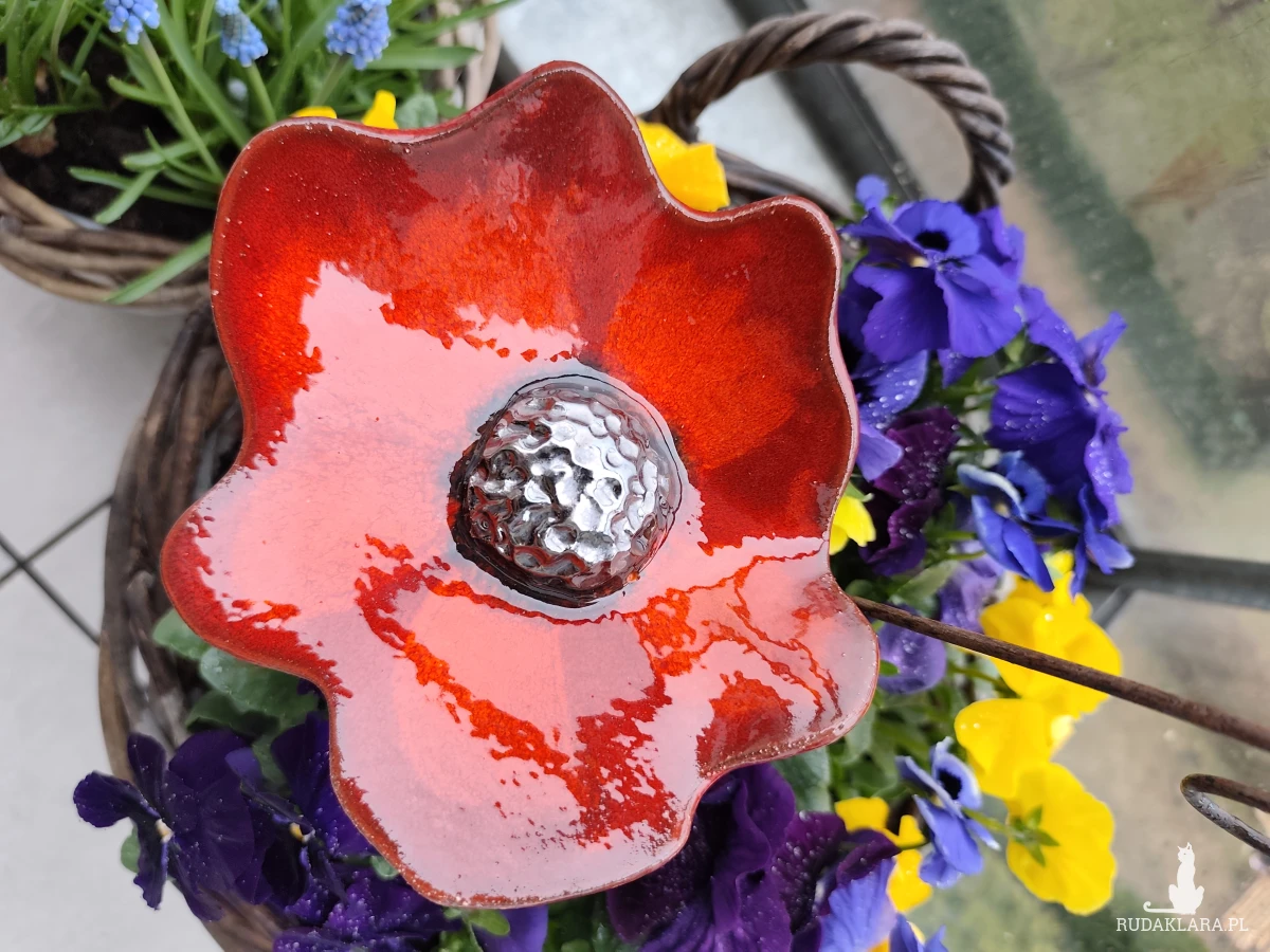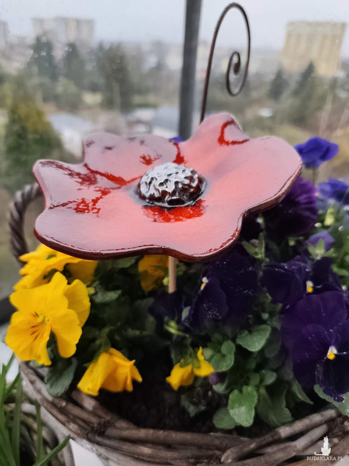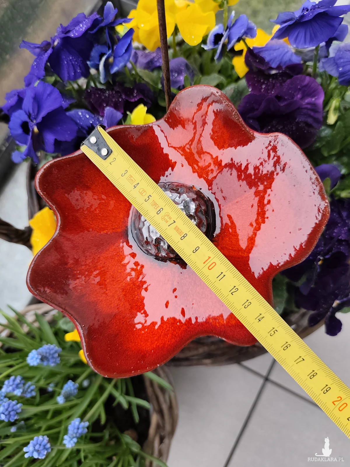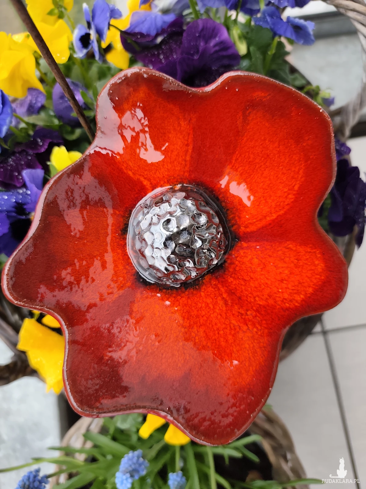 Kwiat ceramiczny - poidło dla owadów. Wykonany ręcznie, szkliwiony i zamontowany na tyczce bambusowej, piękny dodatek do ogrodu lub na balkon.