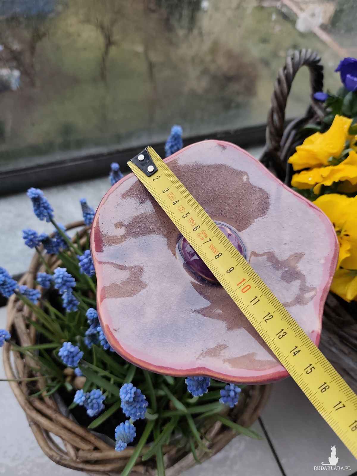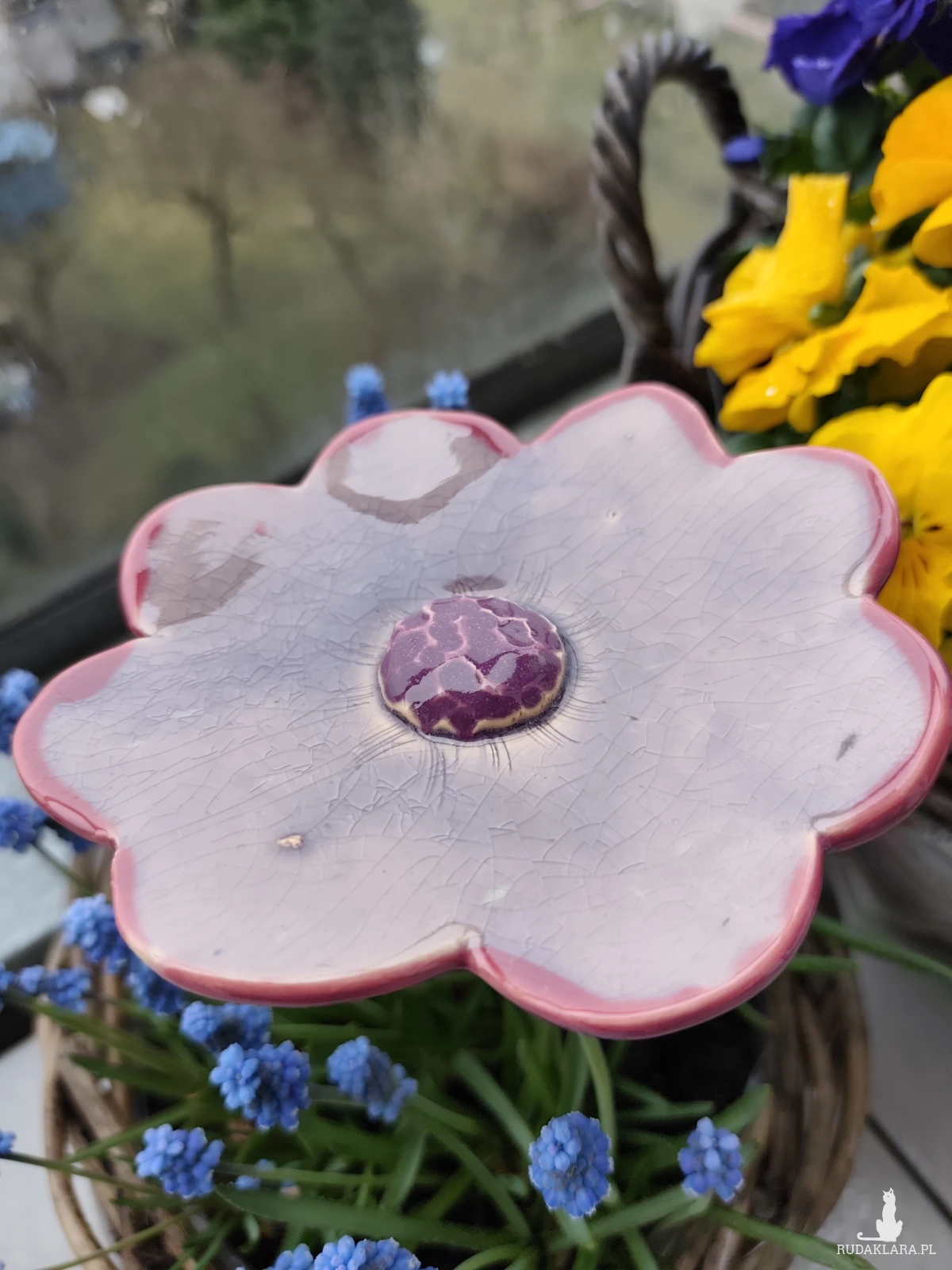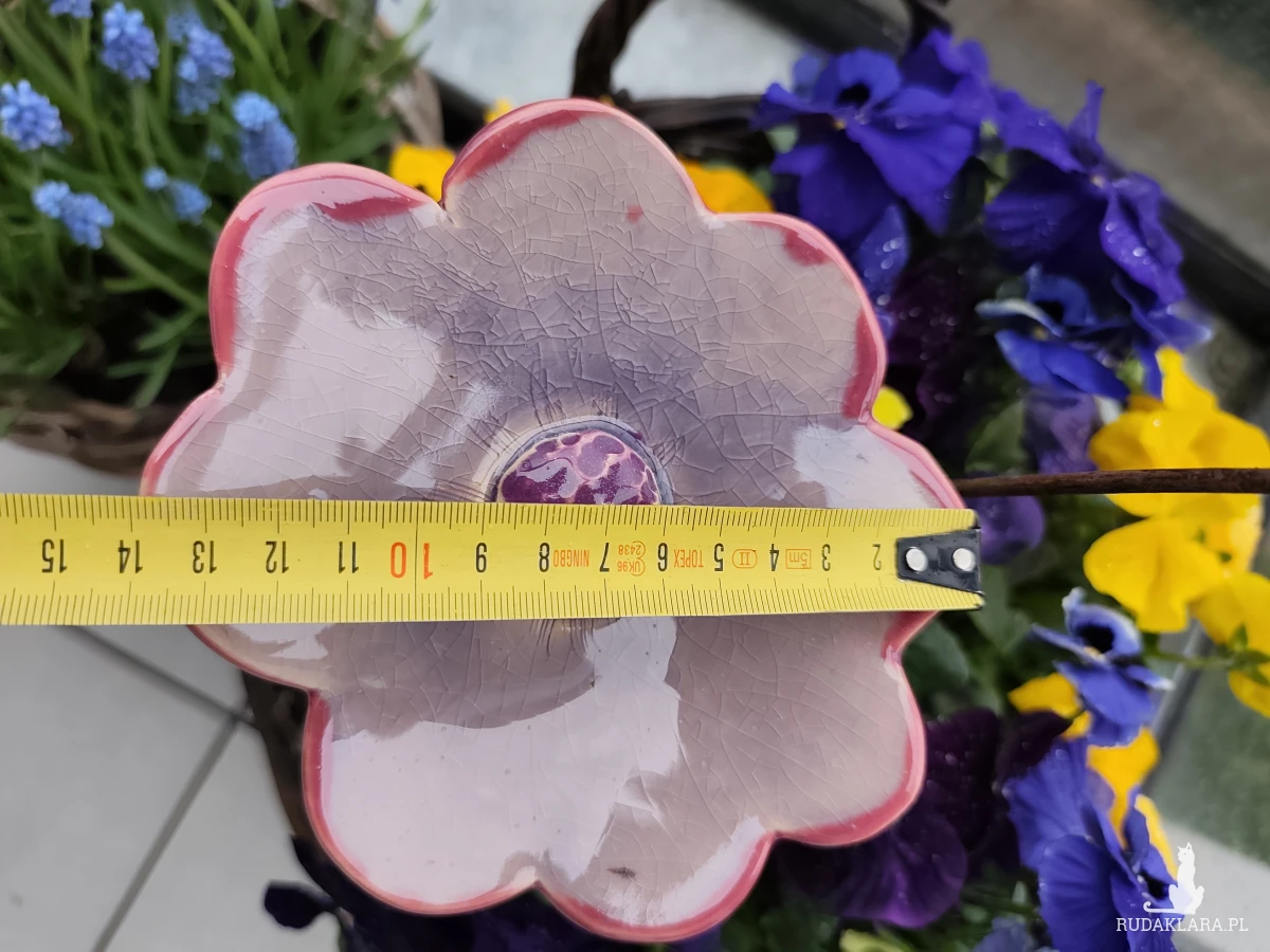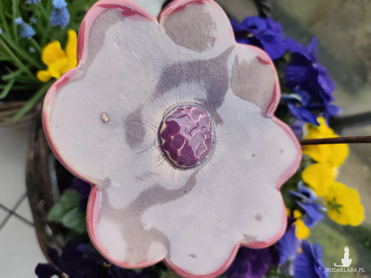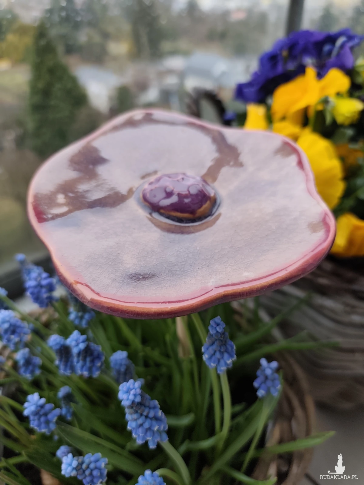 Kwiat ceramiczny - poidło dla owadów. Wykonany ręcznie, szkliwiony i zamontowany na tyczce bambusowej, piękny dodatek do ogrodu lub na balkon.