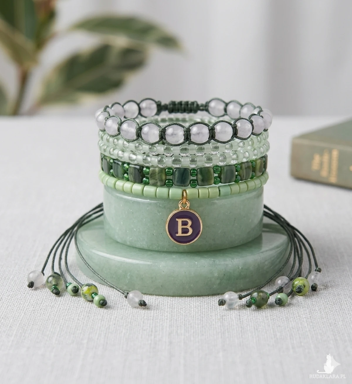 zestawie czterech bransoletek. Połączenie kojącej zieleni oraz