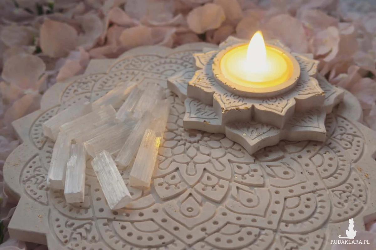 To połączenie symboliki mandali, światła świecy oraz wysokiej wibracji selenitu tworzy przestrzeń spokoju, równowagi i dobrej energii.