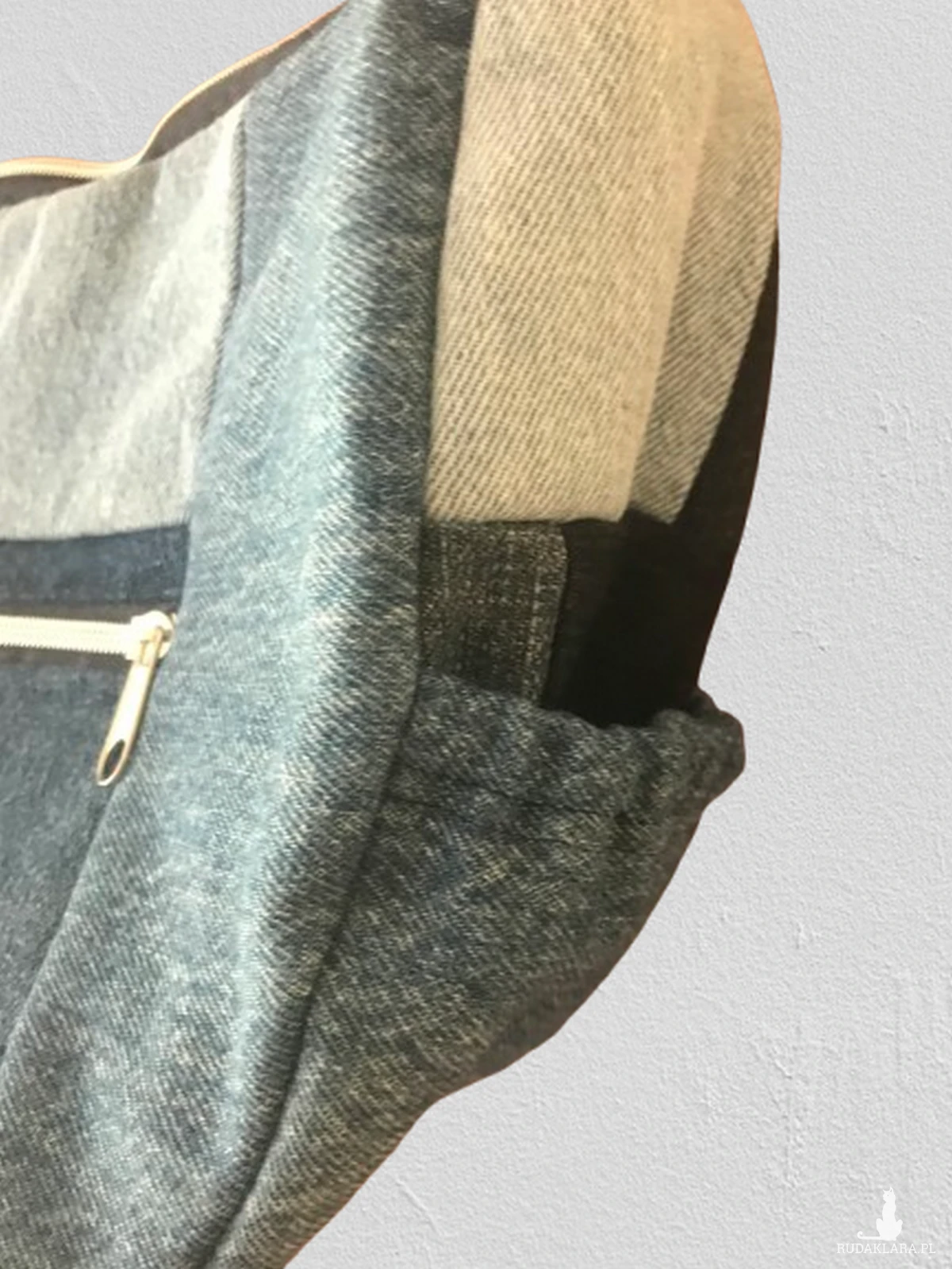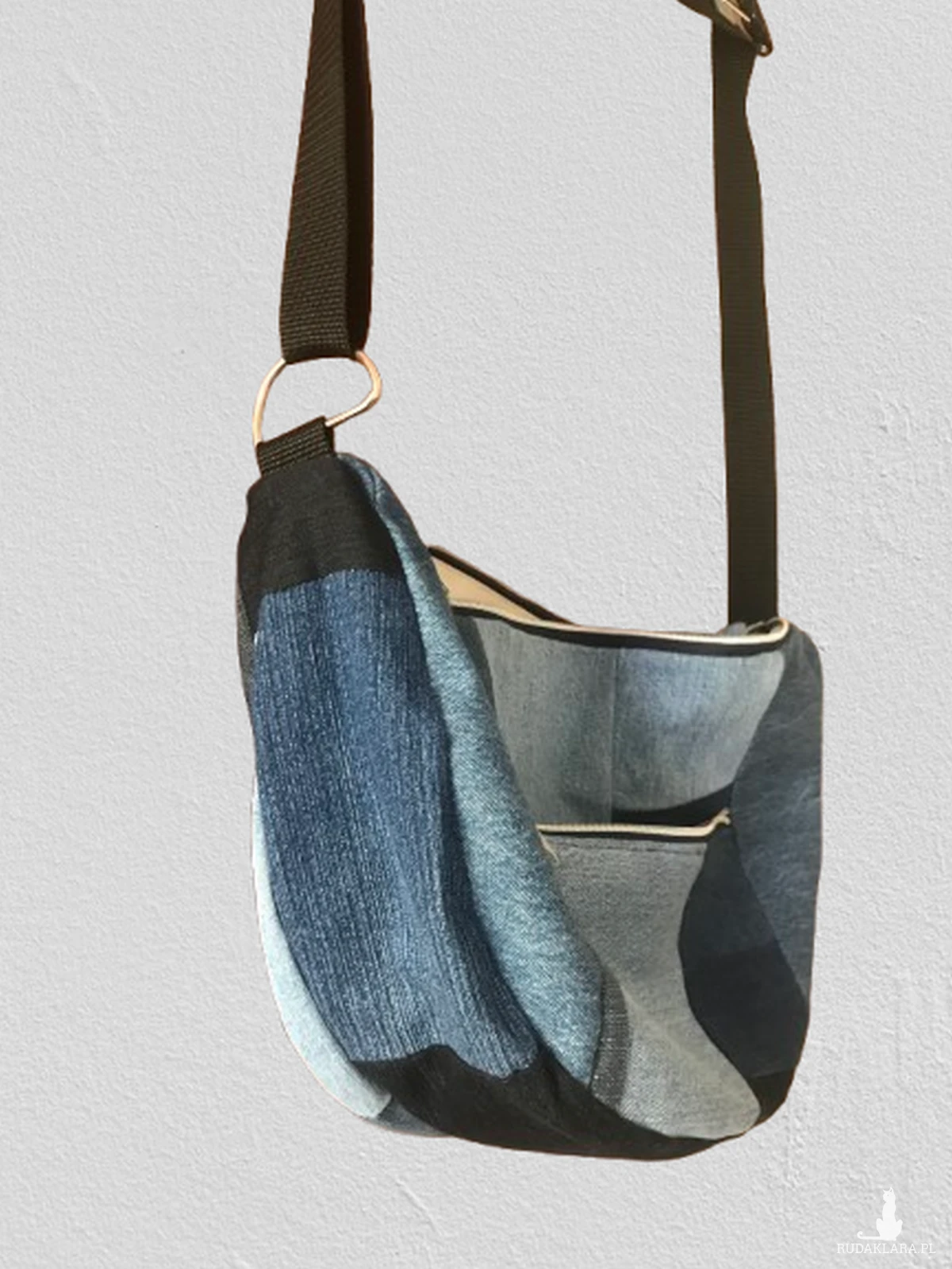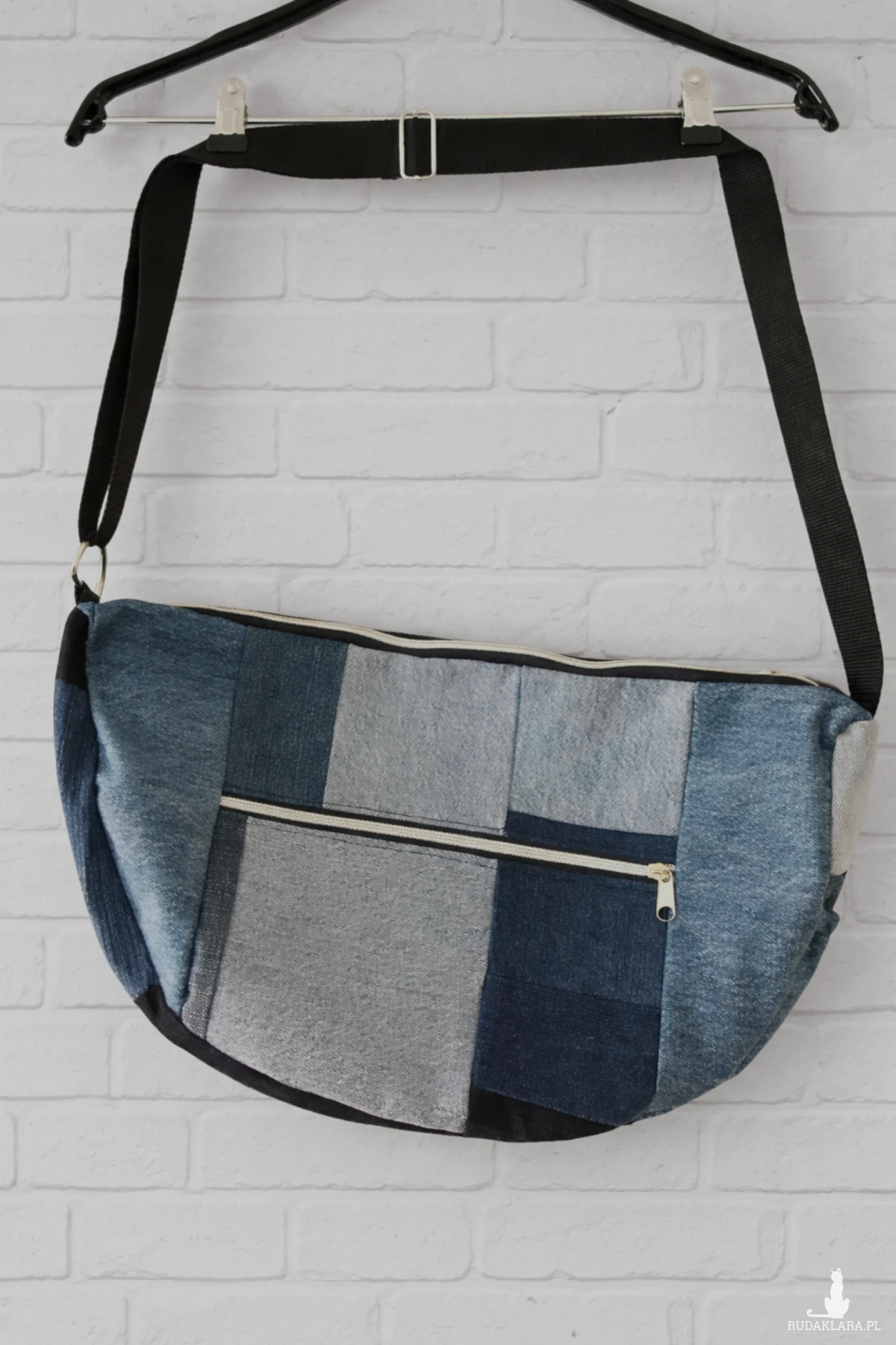 Ta torebka powstała z recyklingowanych spodni jeansowych.