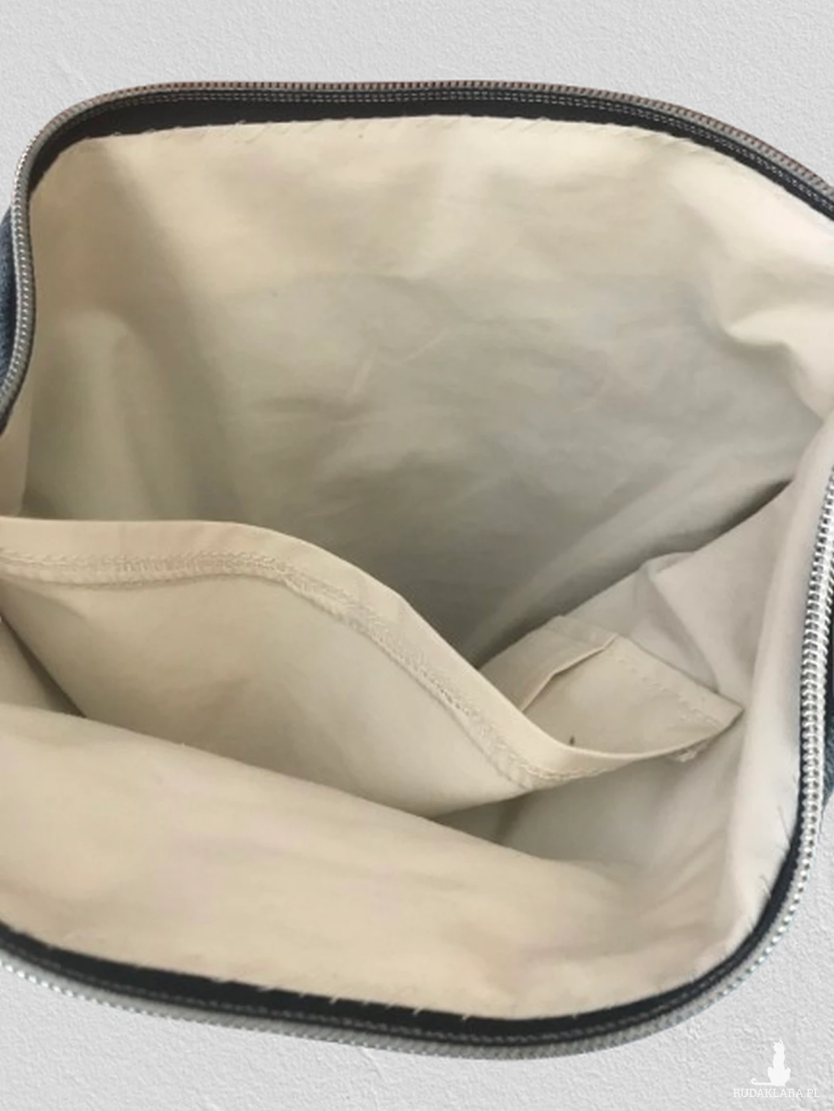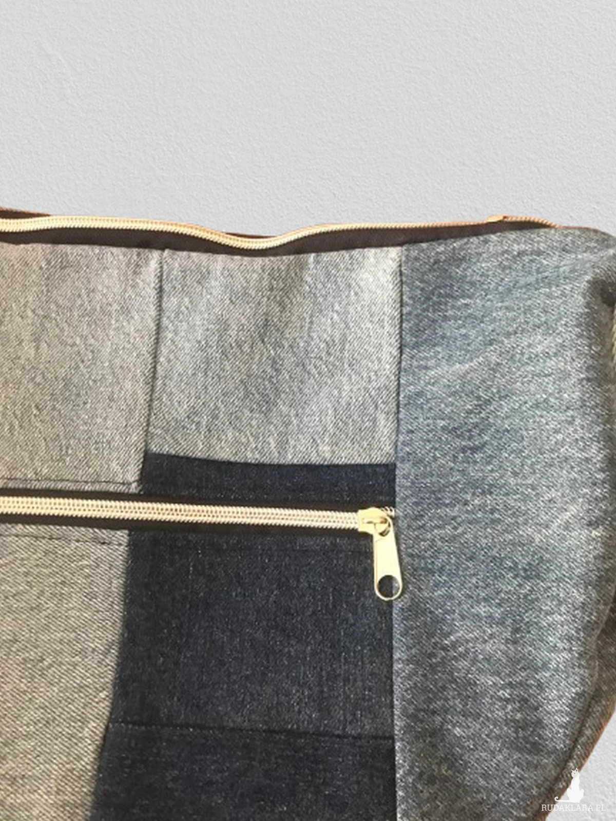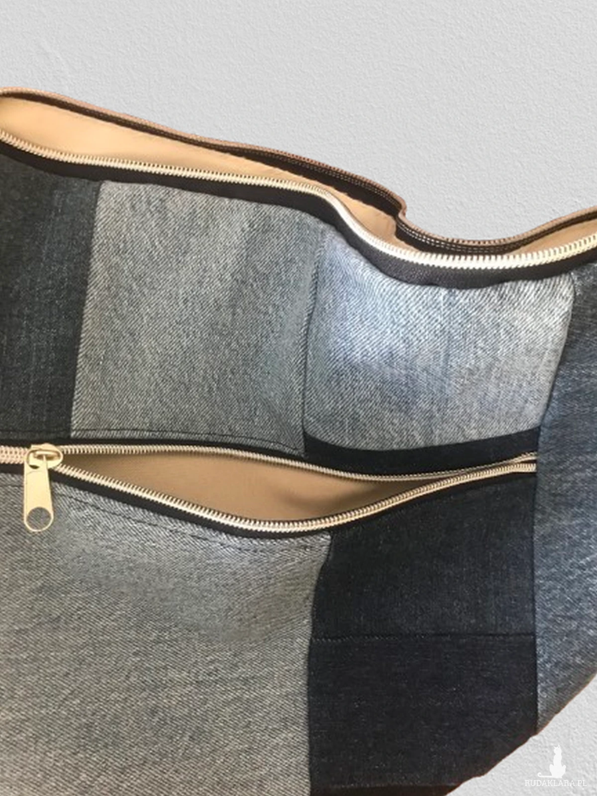 Ta torebka powstała z recyklingowanych spodni jeansowych.