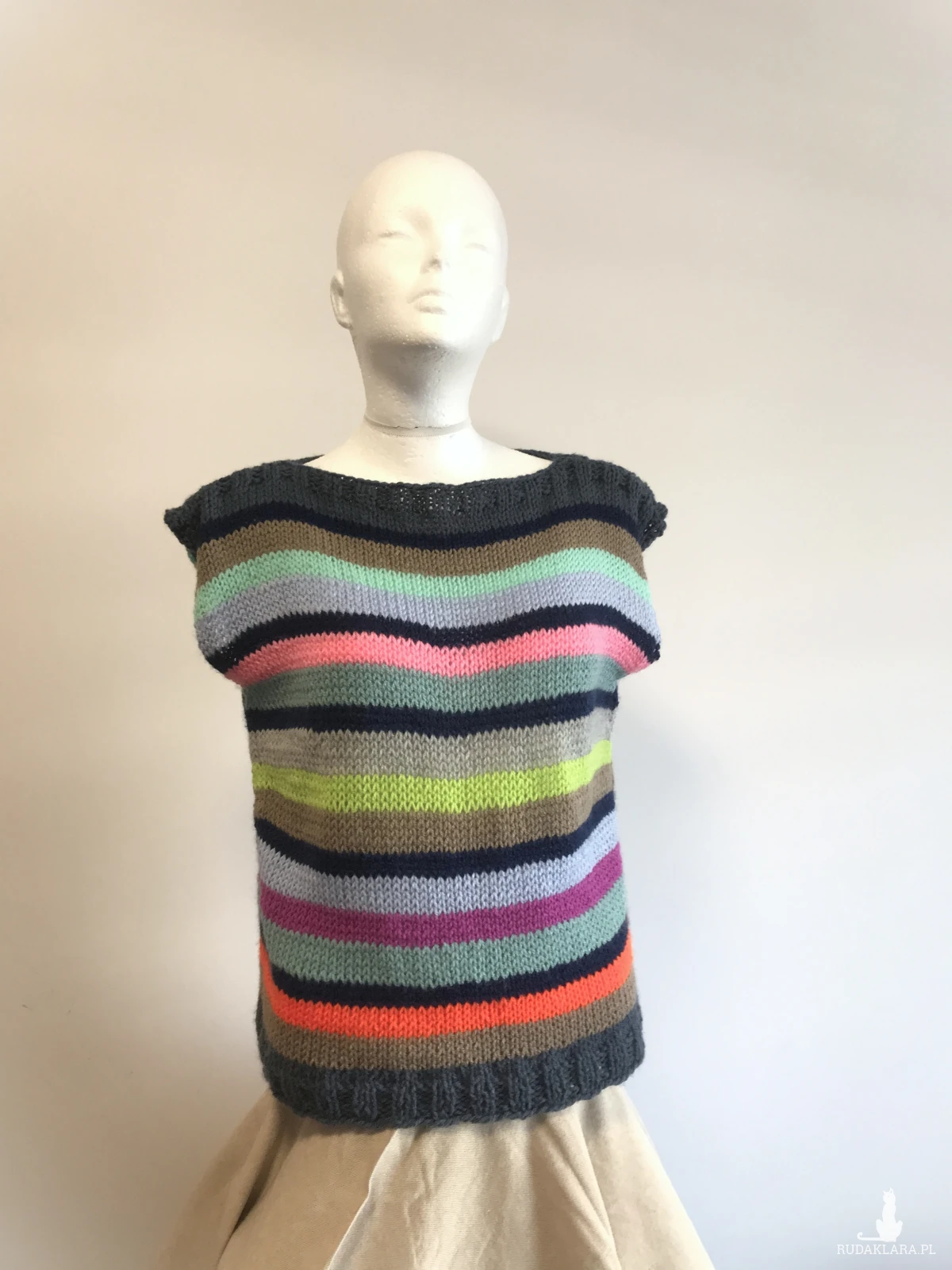 Bluzka - nowa, miękka (włóczka pluszowa), wykonana na drutach, idealna na okresy przejściowe lub mniej upalne dni letnie. Zalecany rozmiar 36 - 40.