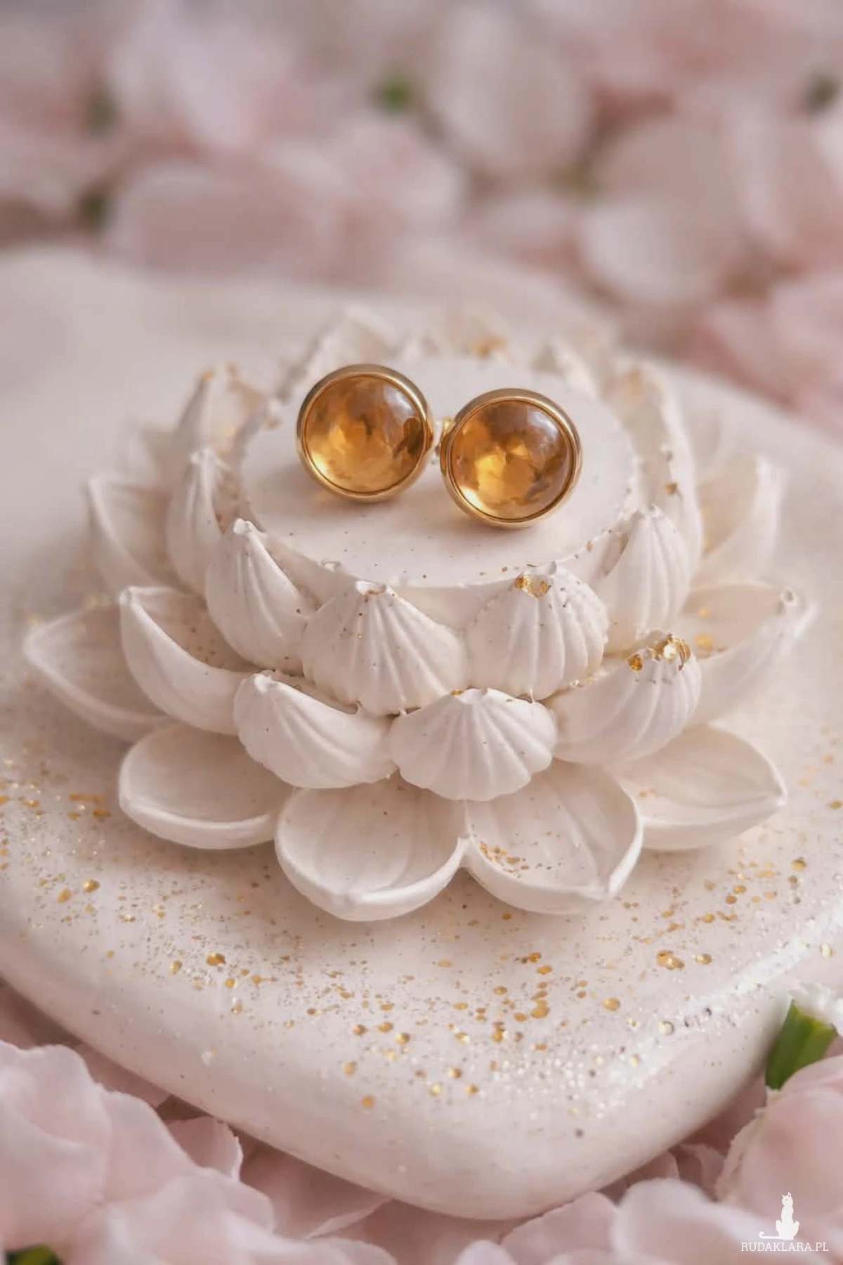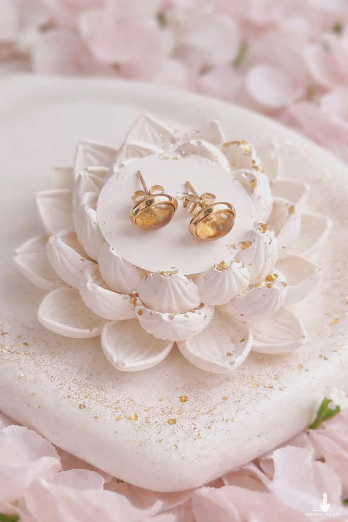 Kolczyki sztyfty ze stali chirurgicznej w kolorze złotym, ozdobione naturalnym cytrynem.