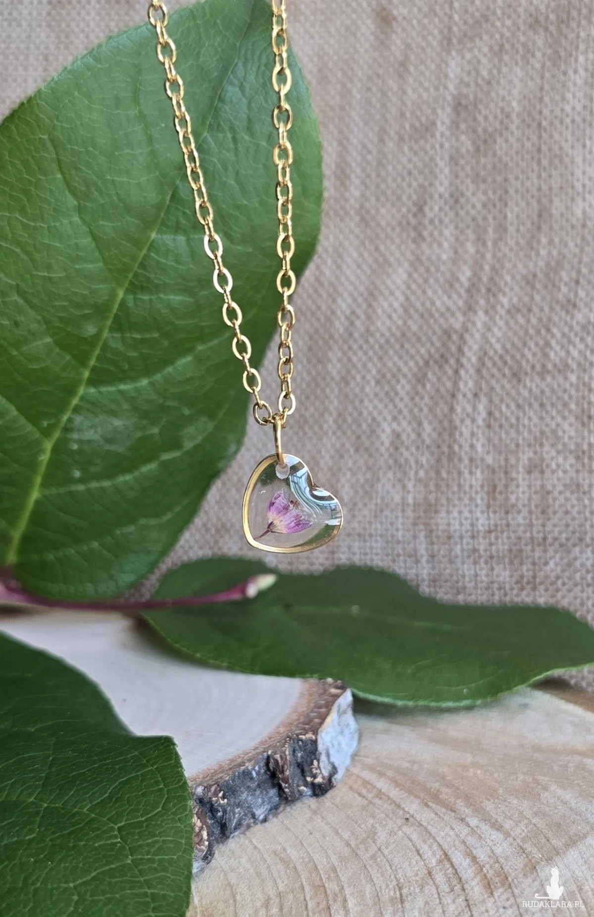 Oferuję Państwu unikalną biżuterię. Zawieszka jest wykonana z suszonych kwiatów i żywicy epoksydowej. Biżuteria jest wspaniałym i oryginalnym prezentem na lata.