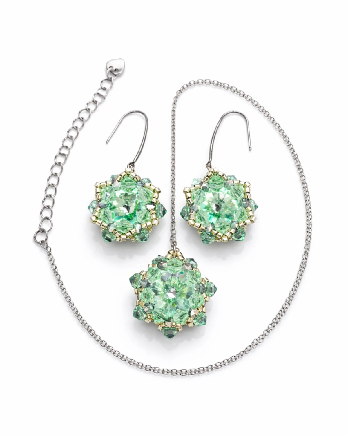 Zielony Komplet Biżuterii "Chrysolite Maxima"- Naszyjnik i Kolczyki z Kryształów Preciosa
