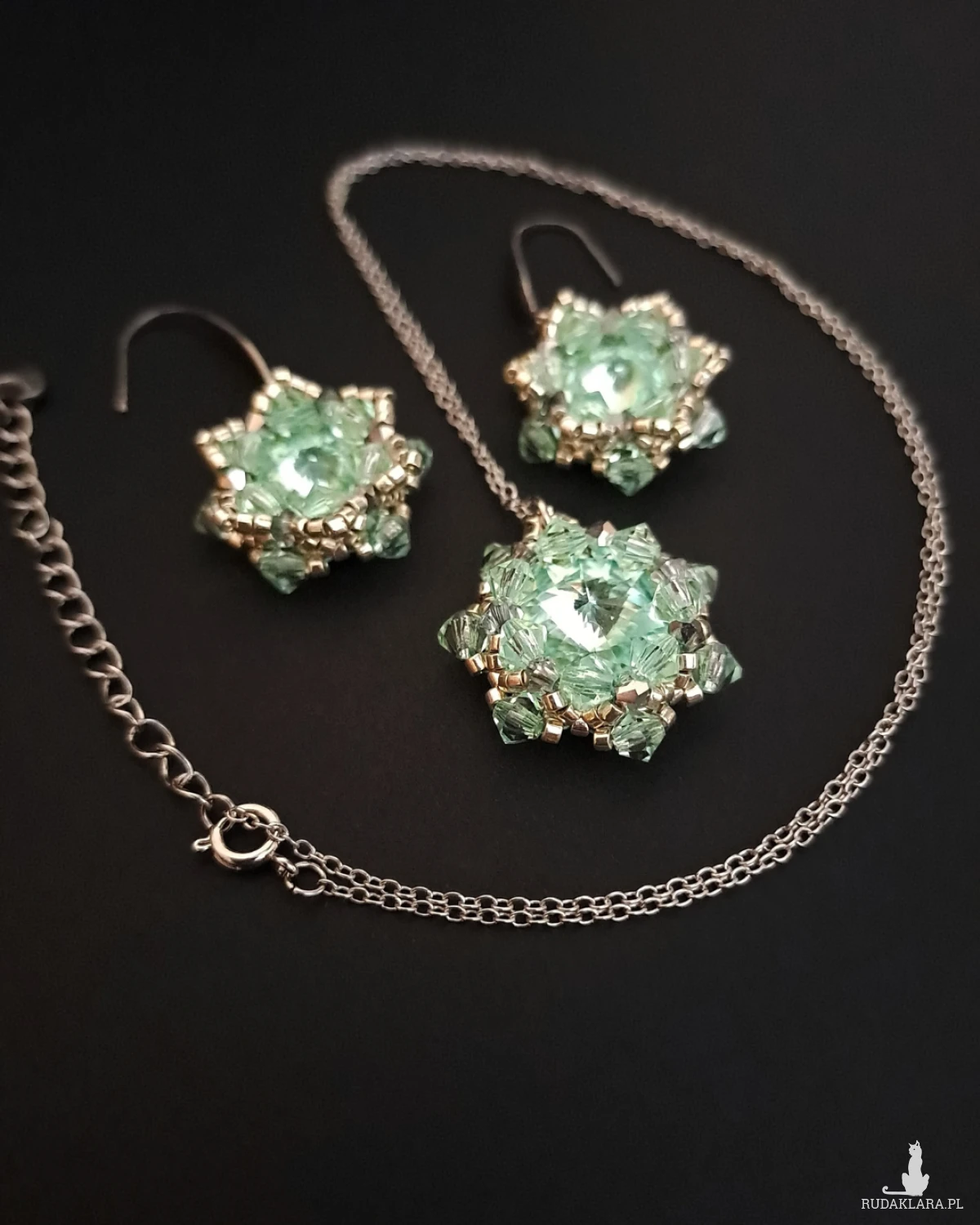 Elegancki komplet biżuterii wykonany ręcznie z kamieni Preciosa Rivoli Maxima to propozycja dla kobiet, które cenią najwyższą jakość materiałów, precyzję wykonania i ponadczasową formę.