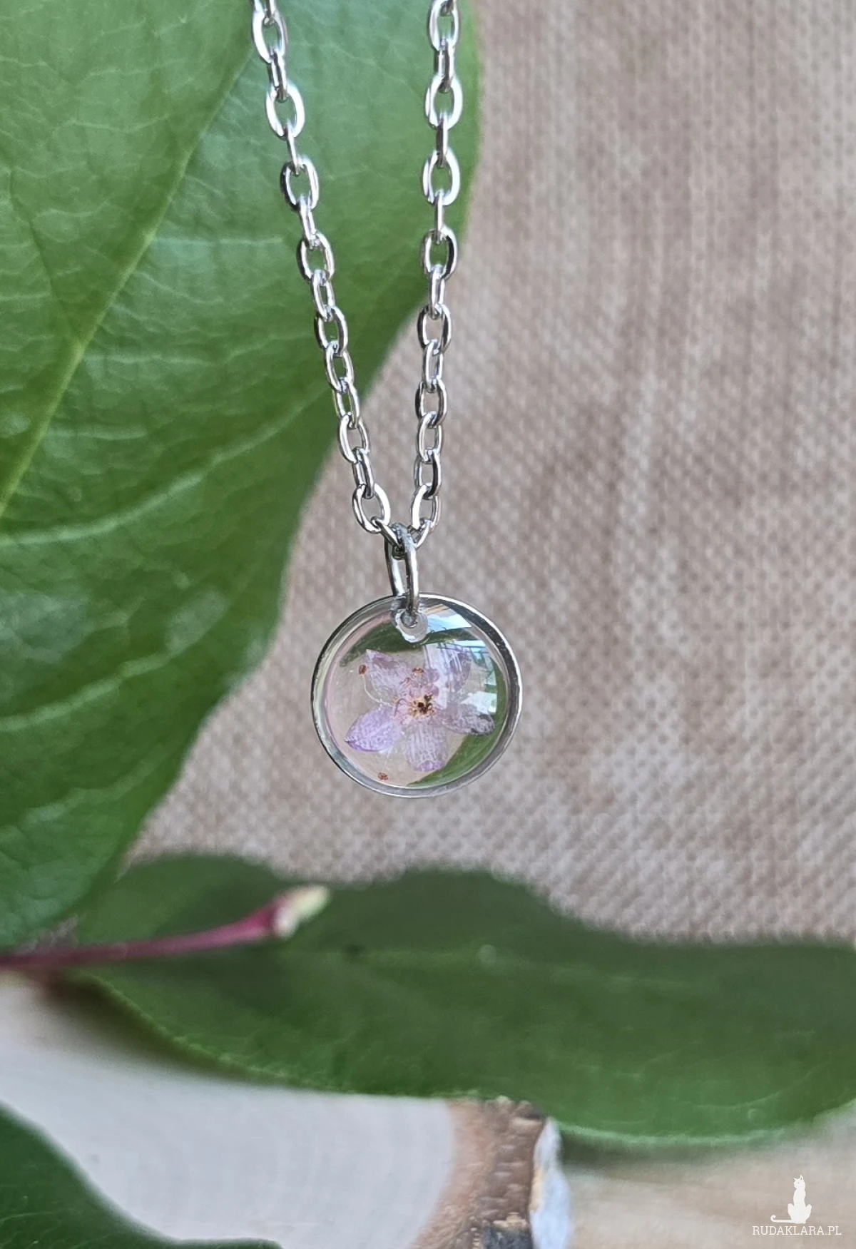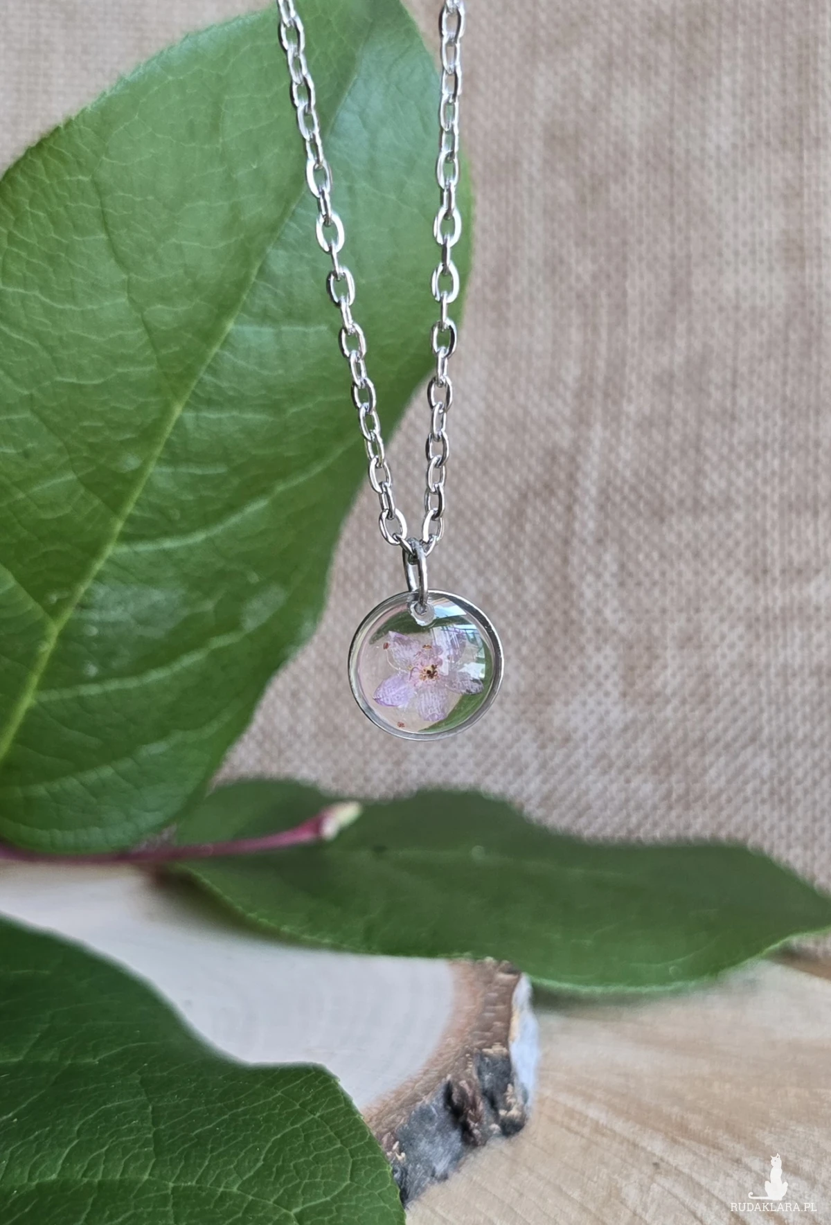 Oferuję Państwu unikalną biżuterię. Zawieszka jest wykonana z suszonych kwiatów i żywicy epoksydowej. Biżuteria jest wspaniałym i oryginalnym prezentem na lata.