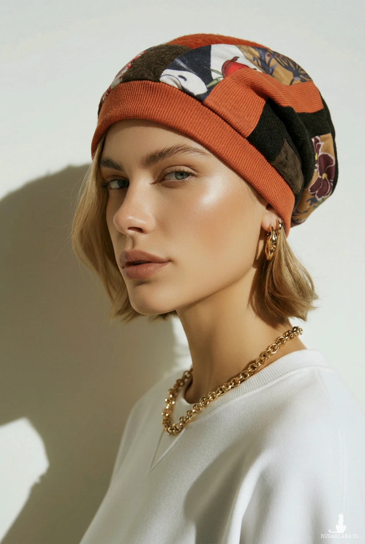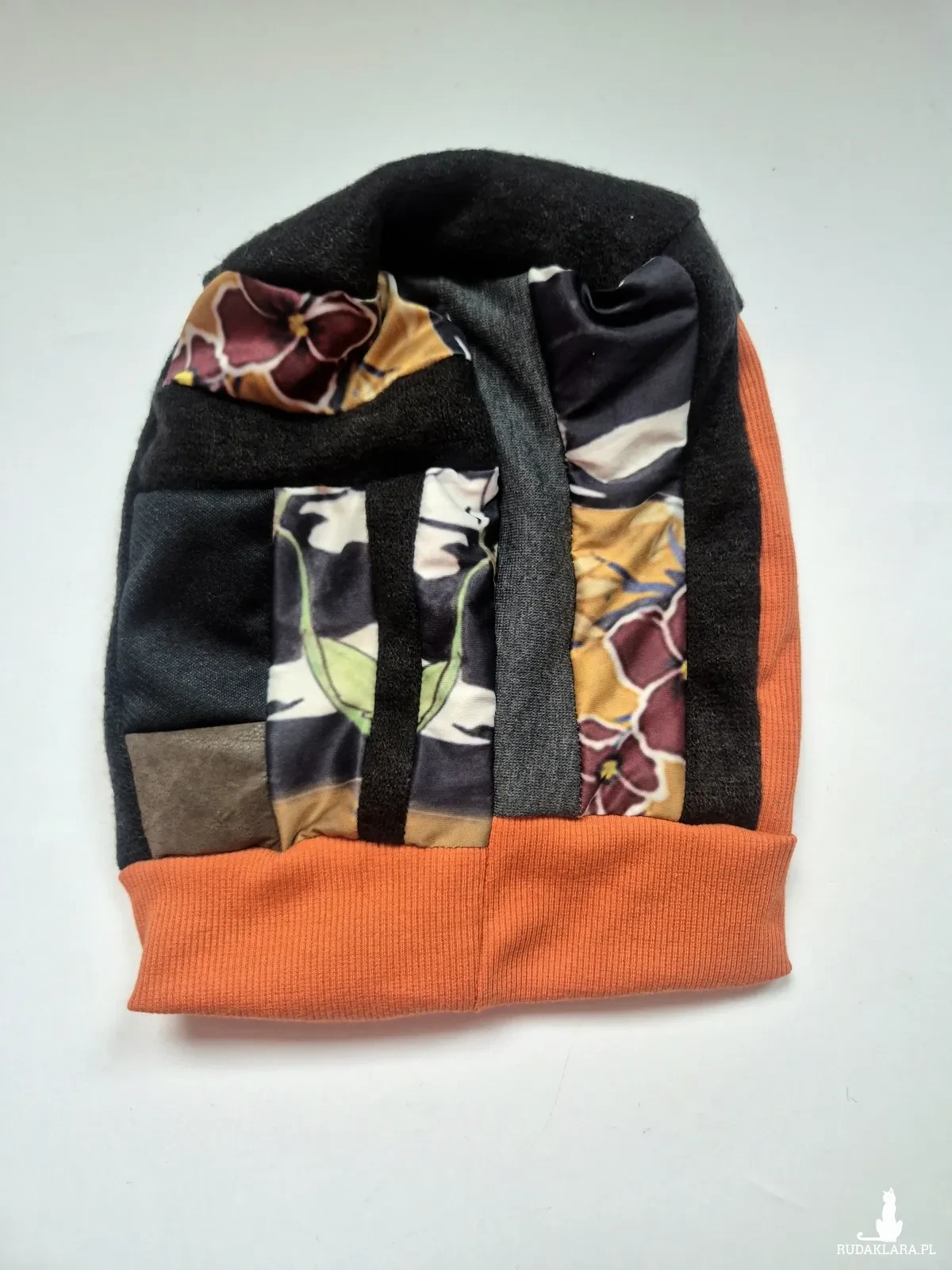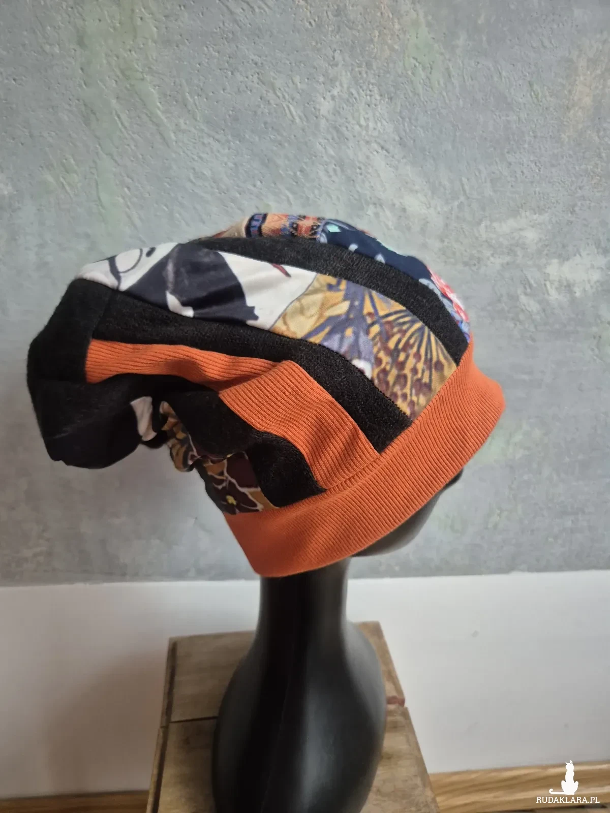 Czapka damska Smerfetka patchworkowa, na podszewce dobra na codzienne noszenie, wykonana w pojedynczym egzemplarzu rękodzieło polecam boks d1