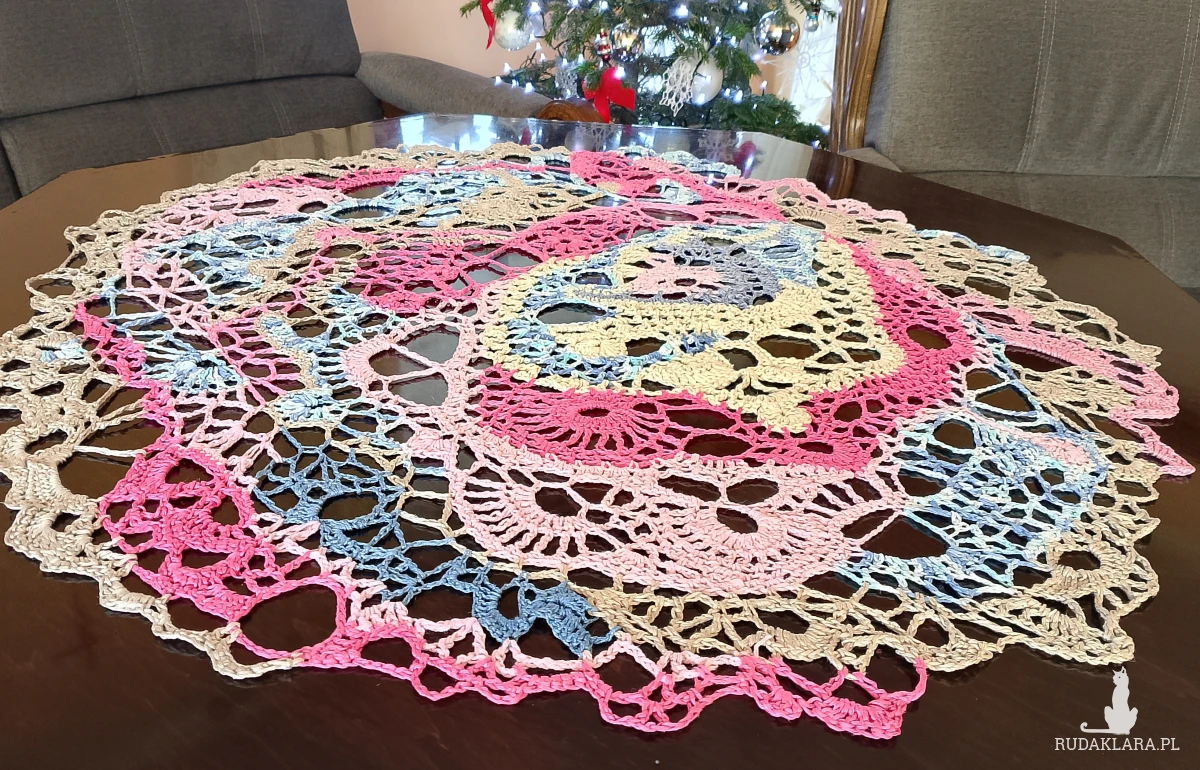Obrus jest niezwykle dekoracyjny, energetyczny i niepowtarzalny, jest unikalnym egzemplarzem.