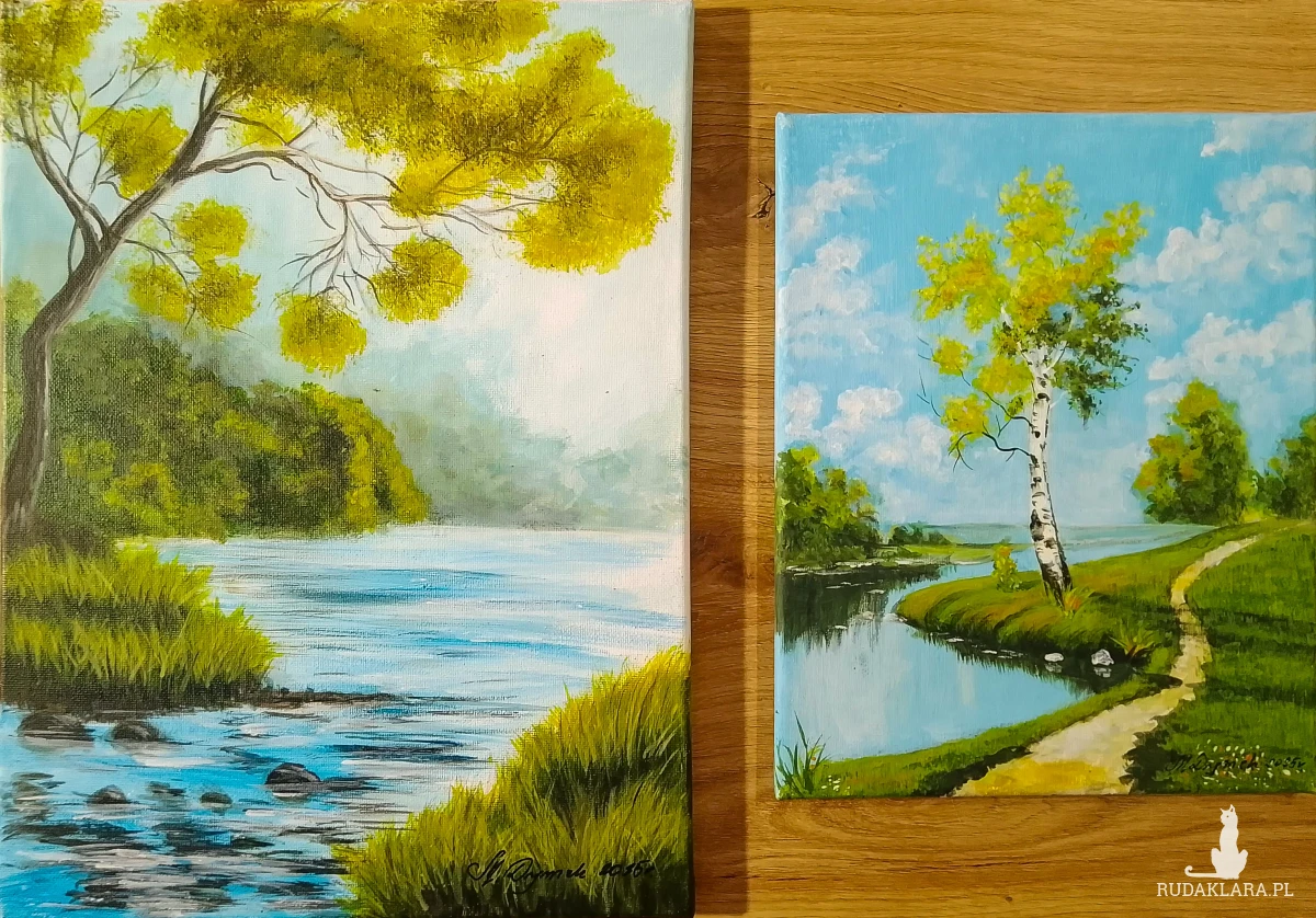 - Tematyka: Polski krajobraz z motywem wody i lasu. Obrazy emanują ciszą i nostalgią.