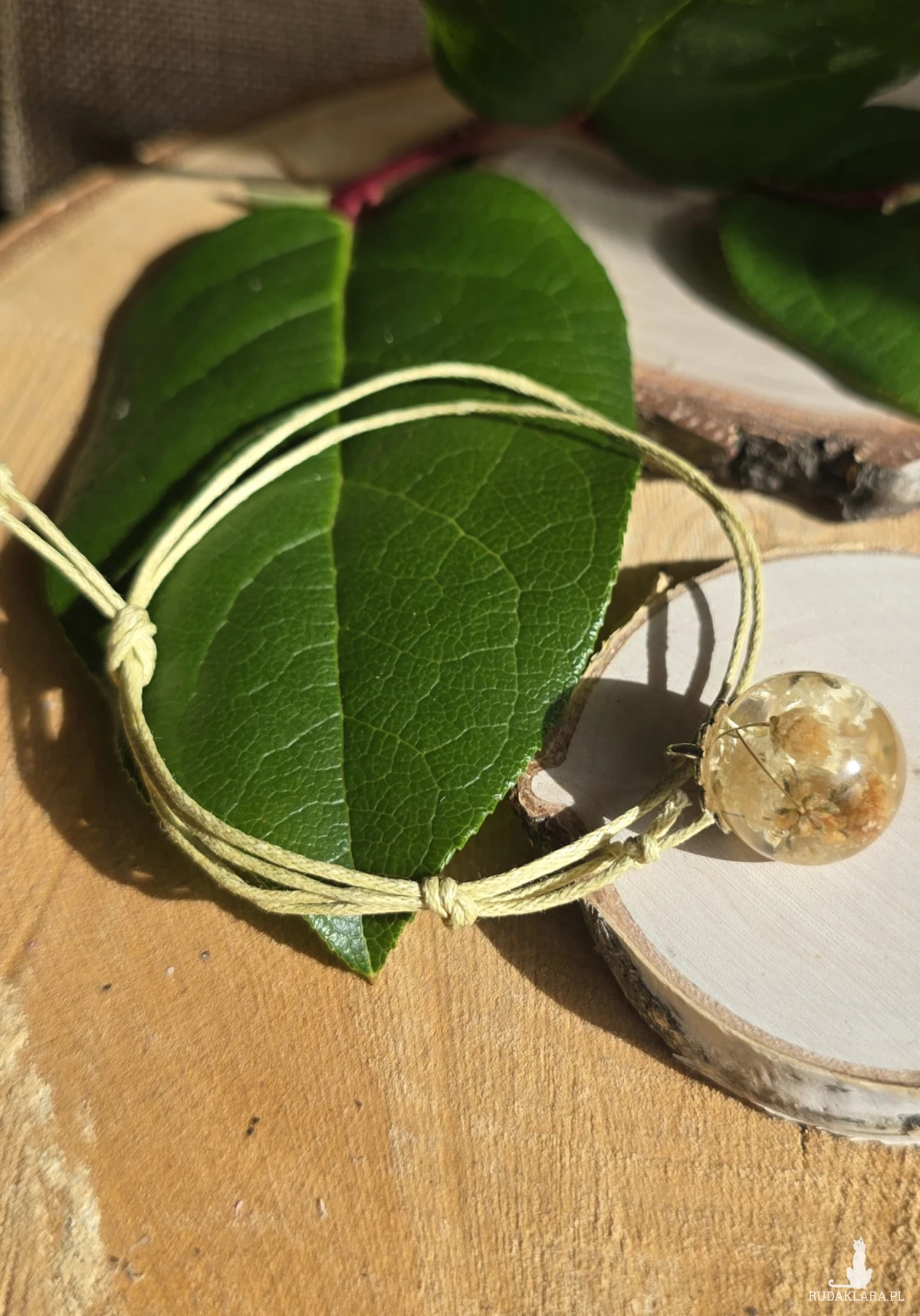 Oferuję Państwu unikalną biżuterię. Bransoletka jest wykonana z suszonych kwiatów i żywicy epoksydowej. Biżuteria jest wspaniałym i oryginalnym prezentem na lata.