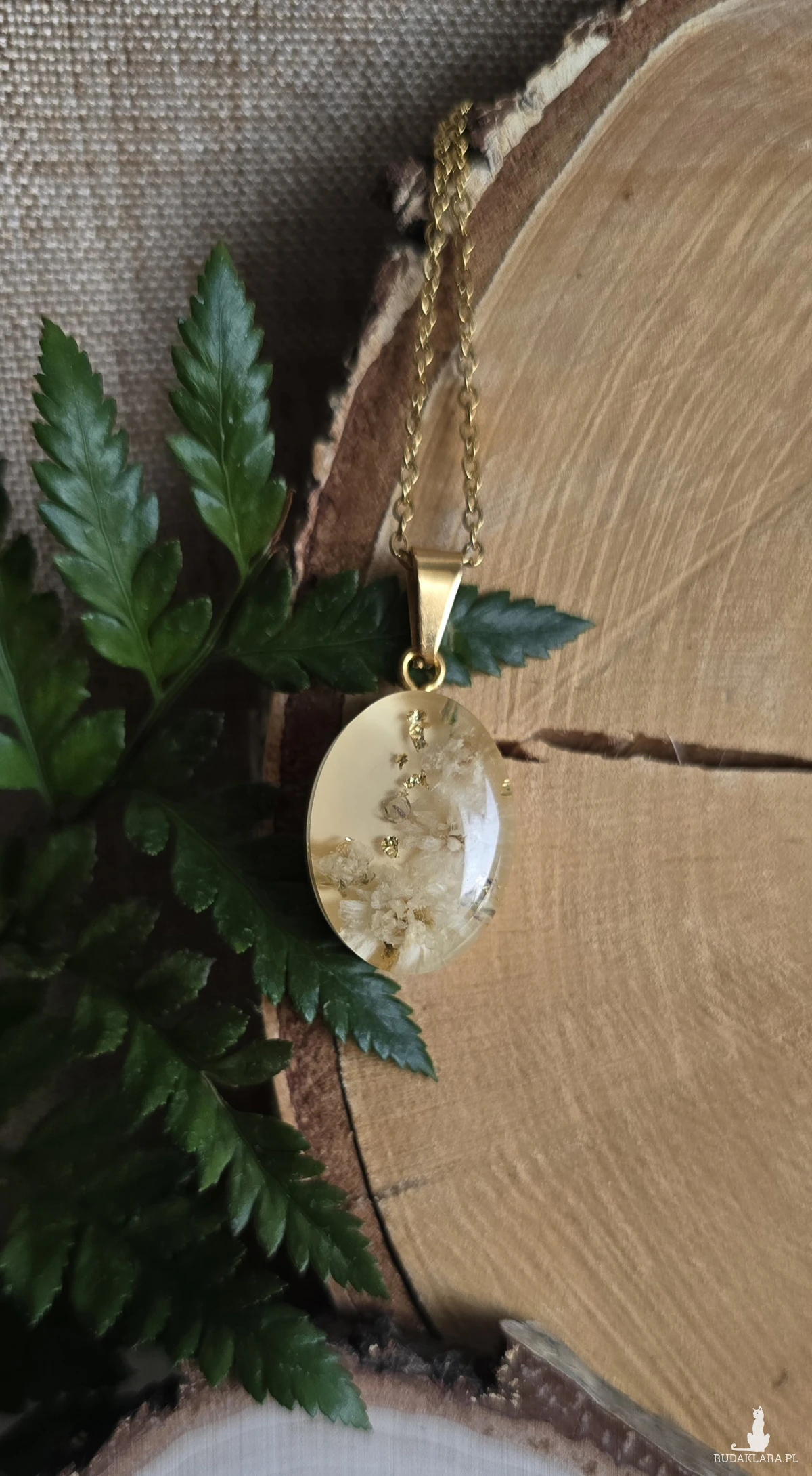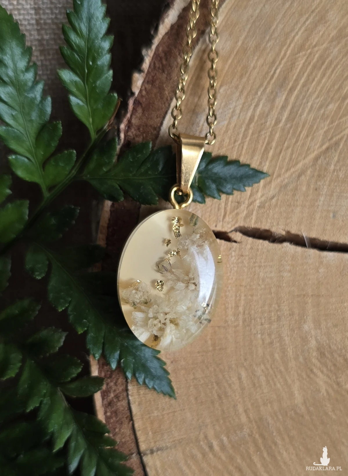 Oferuję Państwu unikalną biżuterię. Zawieszka jest wykonana z suszonych kwiatów i żywicy epoksydowej. Biżuteria jest wspaniałym i oryginalnym prezentem na lata.