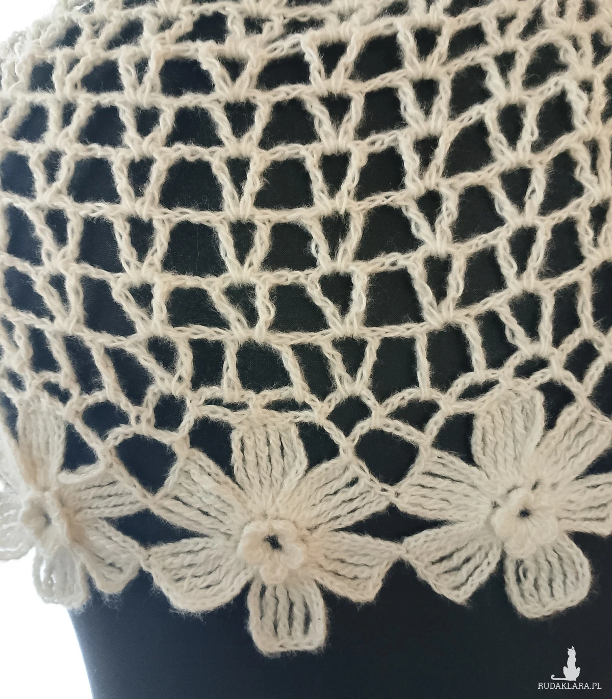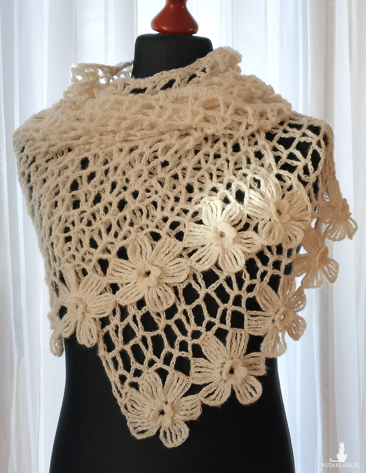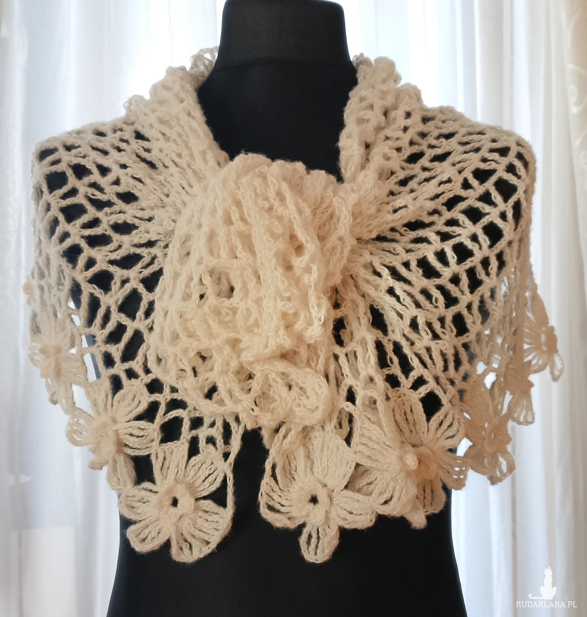 Wyjątkowo piękny szal wykonany w całości ręcznie. Użyto moheru, bardzo