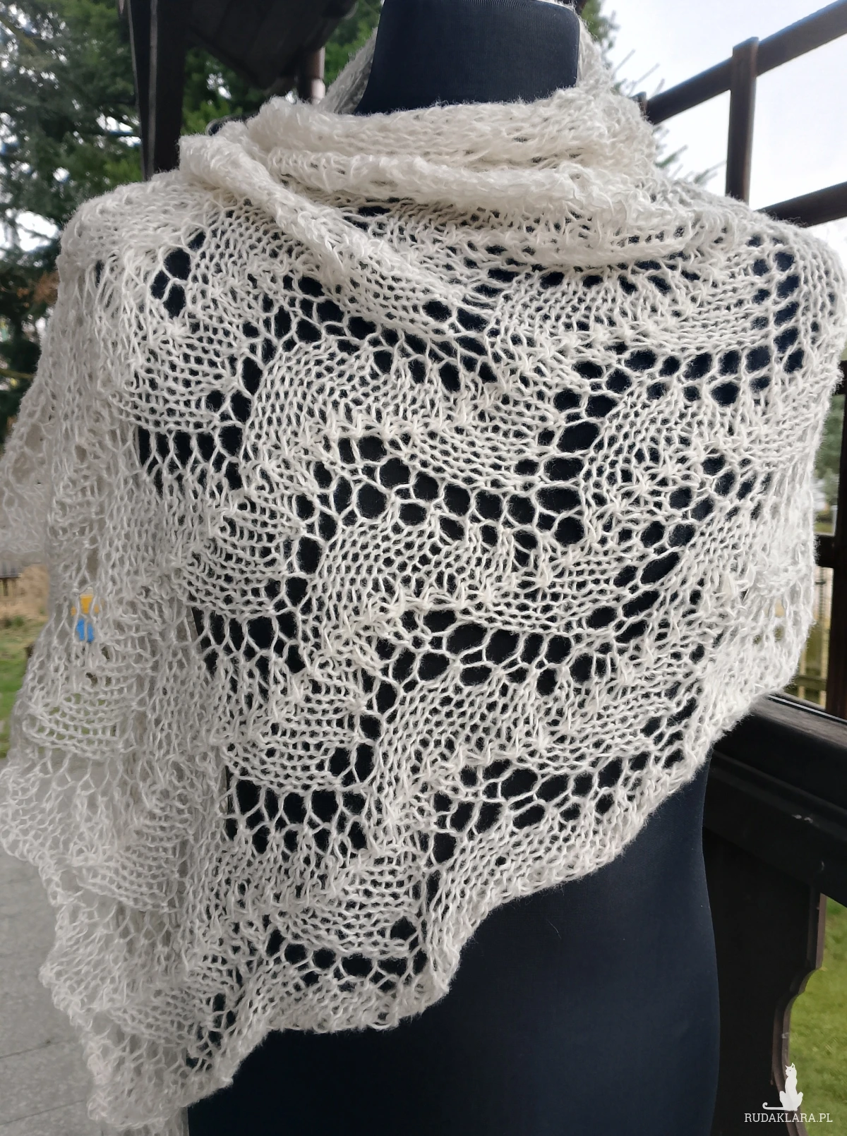 Wyjątkowo piękny szal wykonany w całości ręcznie. Użyto moheru, bardzo