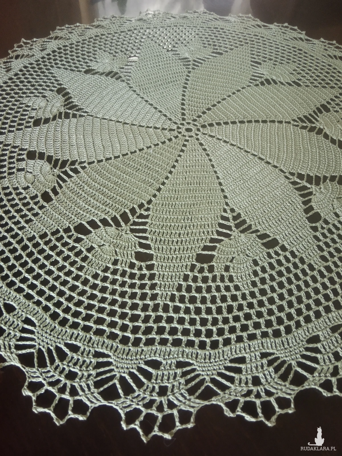 Serwetka wykonana w całości ręcznie z cienkiego kordonka, pięknym