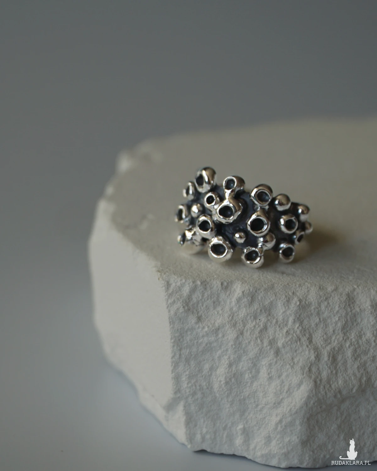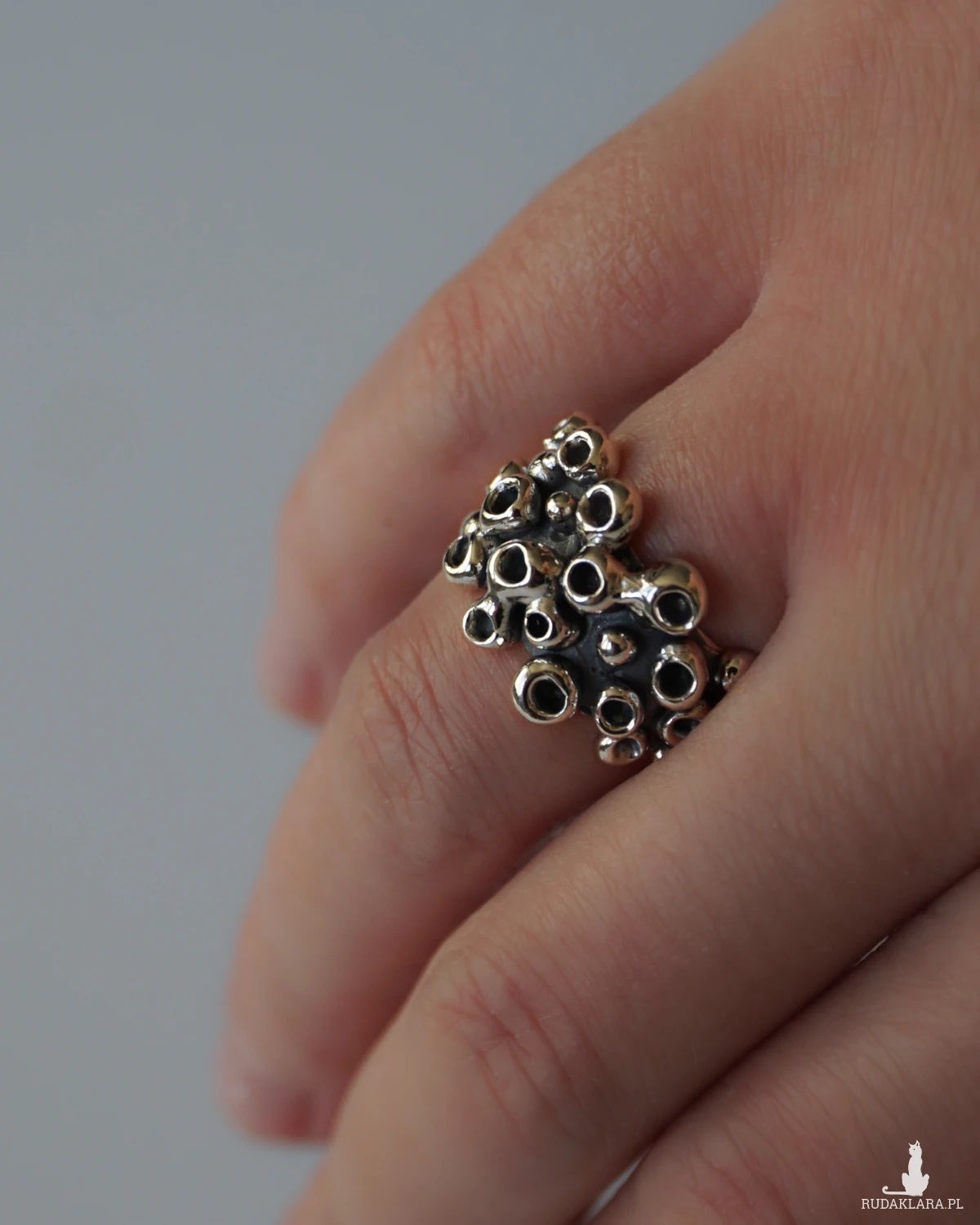 Srebrny pierścień Octopus Black inspirowany macką ośmiornicy, chętnie kupowany zarówno przez kobiety jak i mężczyzn. Wykonany w srebrze próby 925.