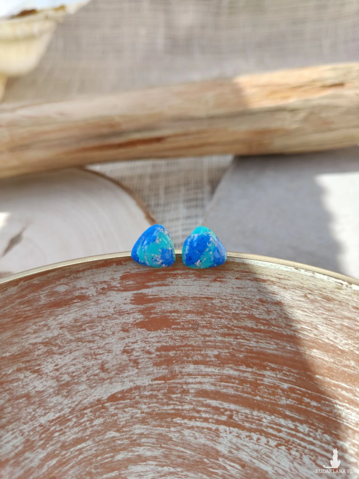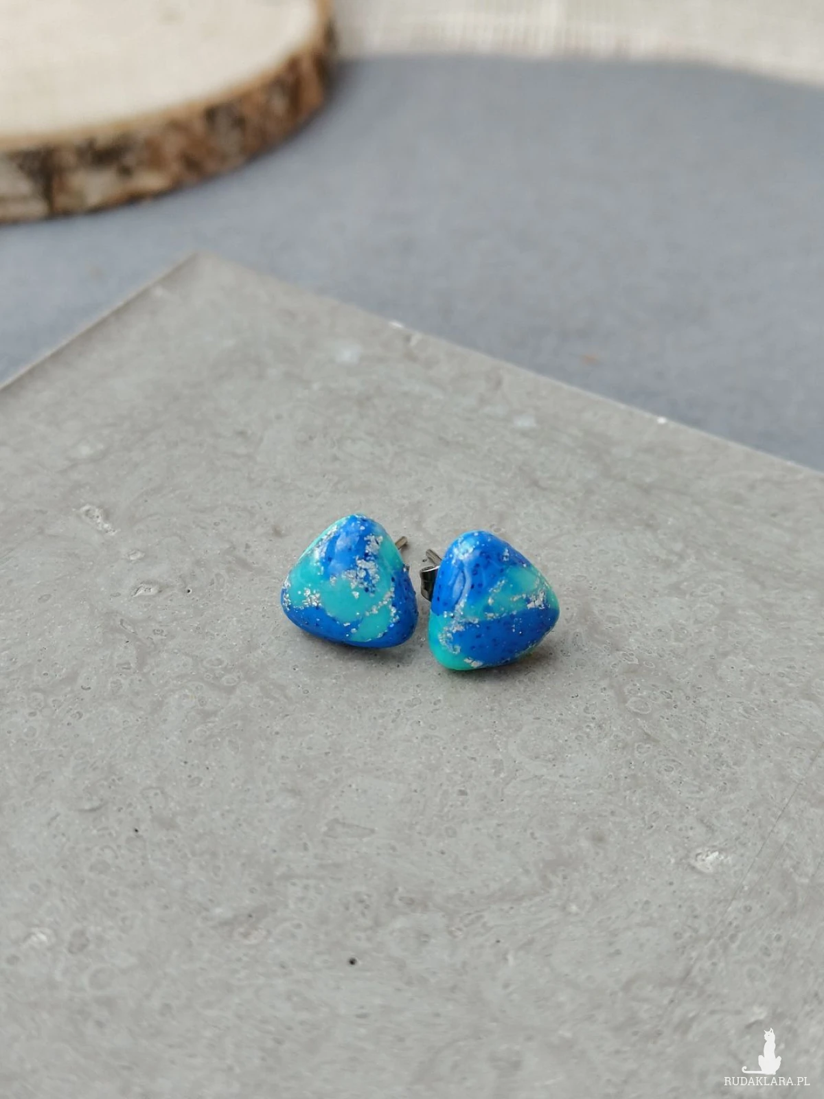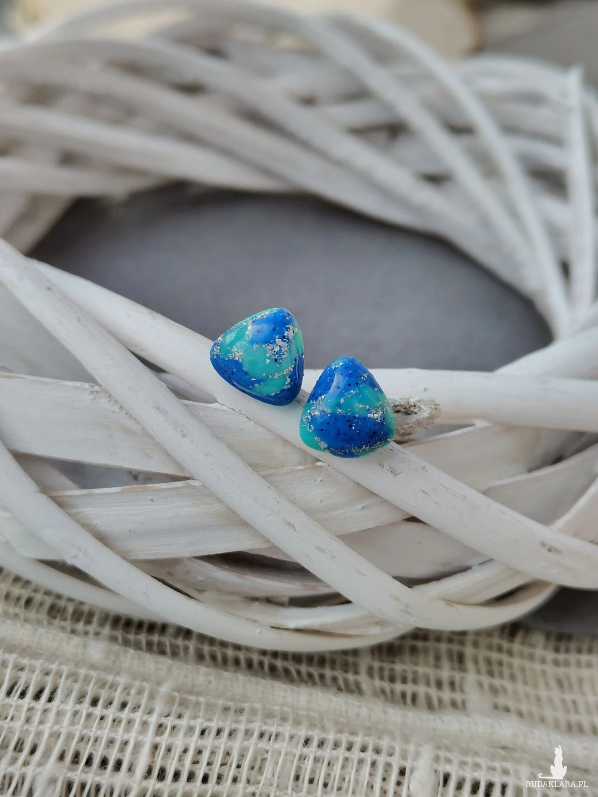Zanurz się w głębi morskich inspiracji dzięki wyjątkowym kolczykom w kształcie trójkąta. Ich hipnotyzujące odcienie błękitu i turkusu, przełamane delikatnym połyskiem drobinek, przywodzą na myśl spokojne fale oceanu i letnie dni nad wodą. Każda para jest ręcznie wykonana, co sprawia, że kolczyki są niepowtarzalne i pełne artystycznego charakteru. To idealny dodatek dla osób, które kochają subtelną elegancję z nutą świeżości i koloru.