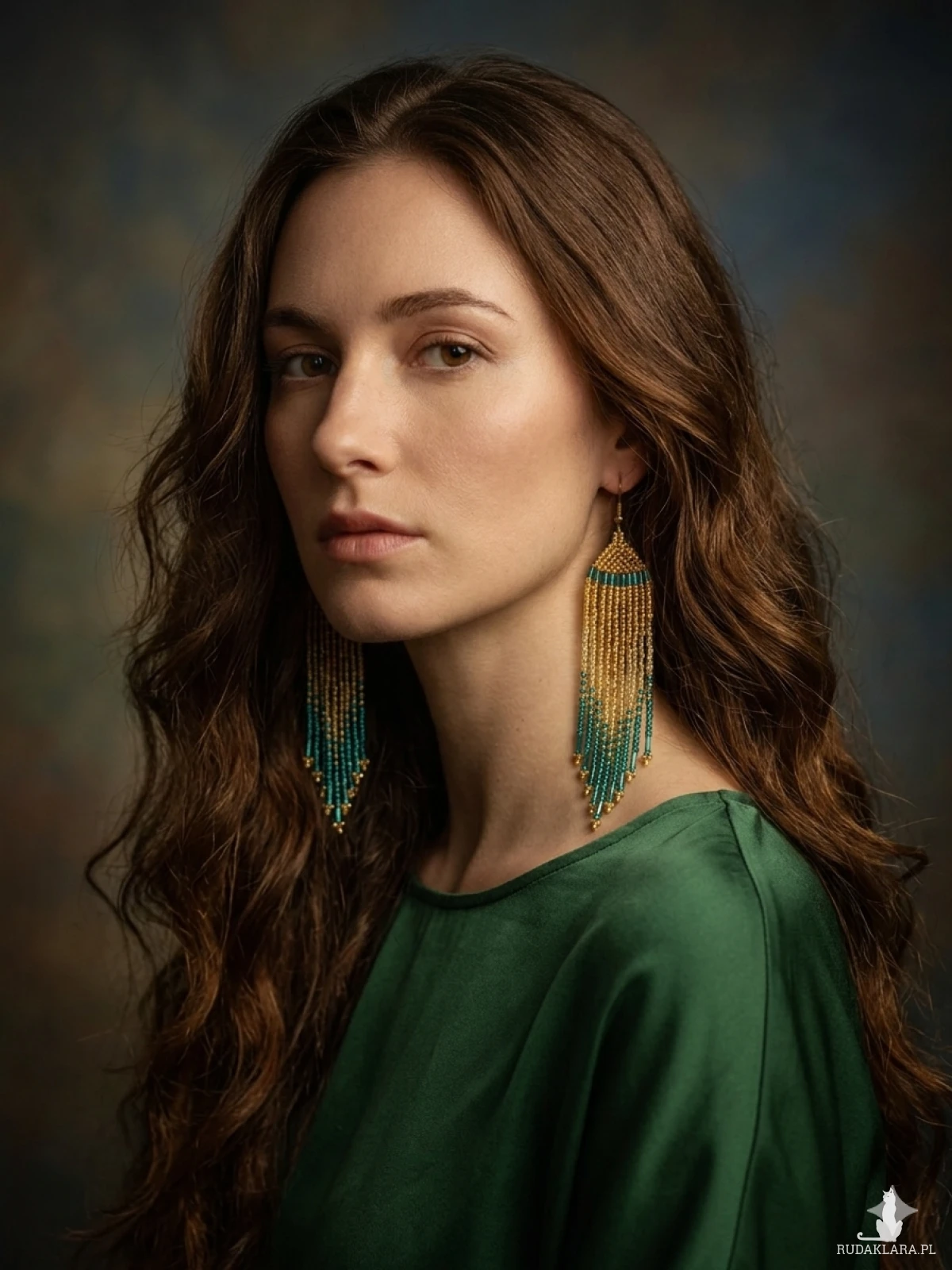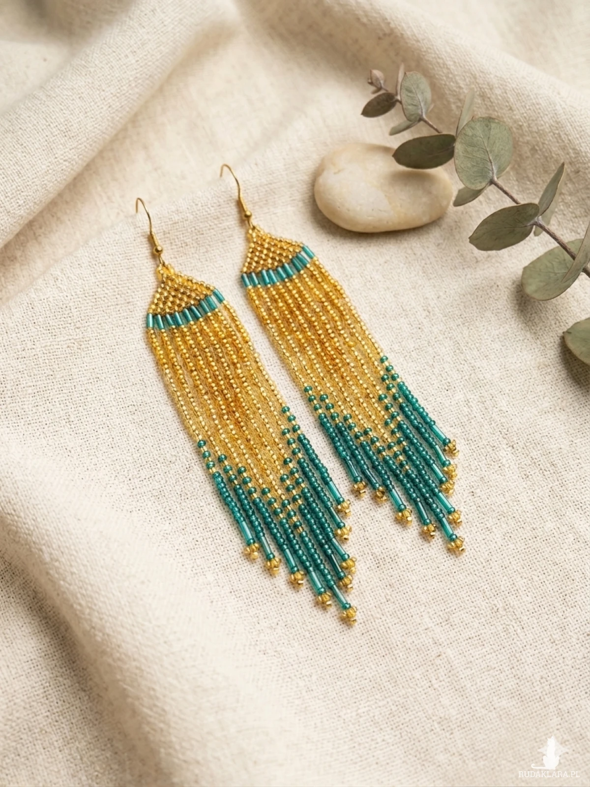 z głębią turkusowych akcentów. Wykonane z precyzyjnych koralików,