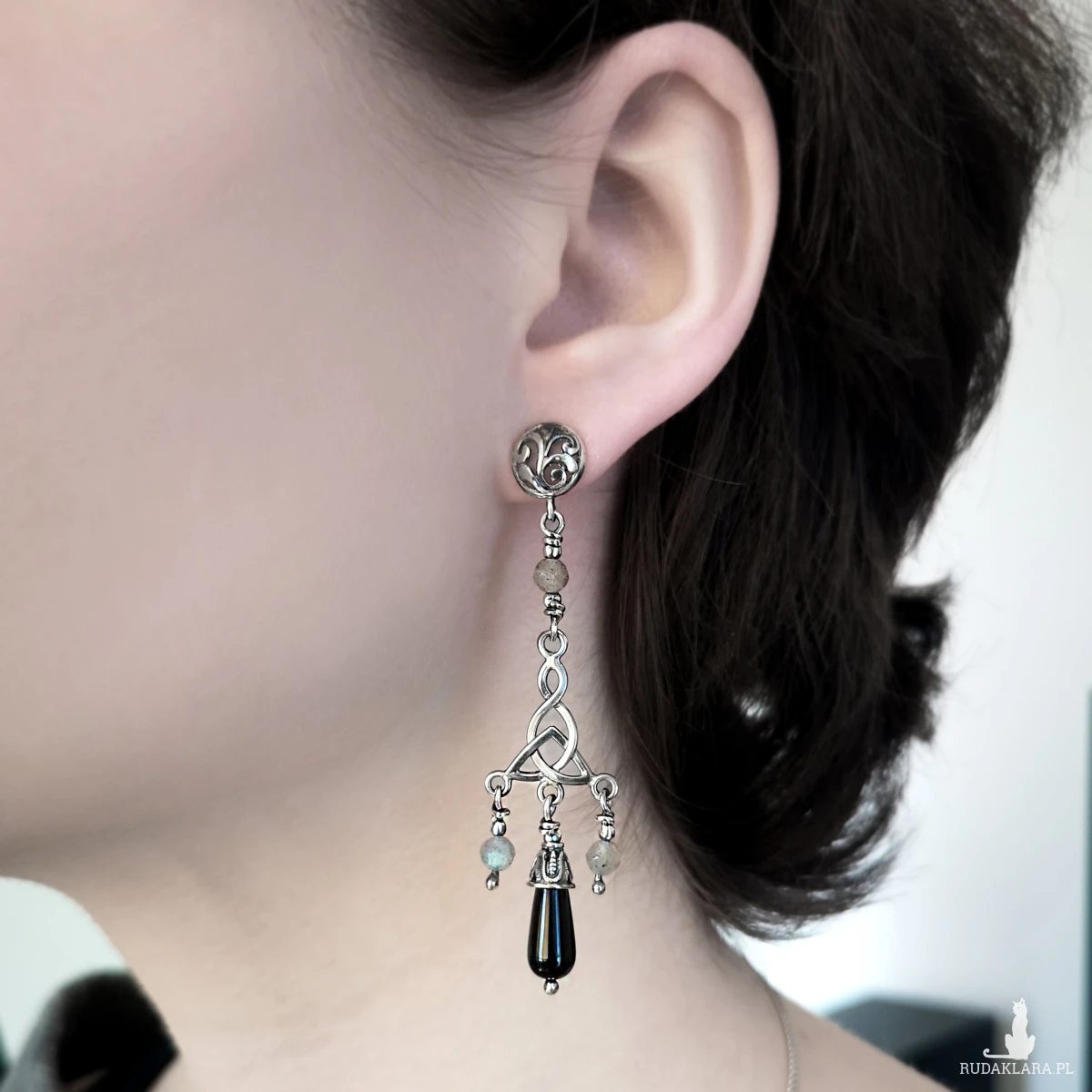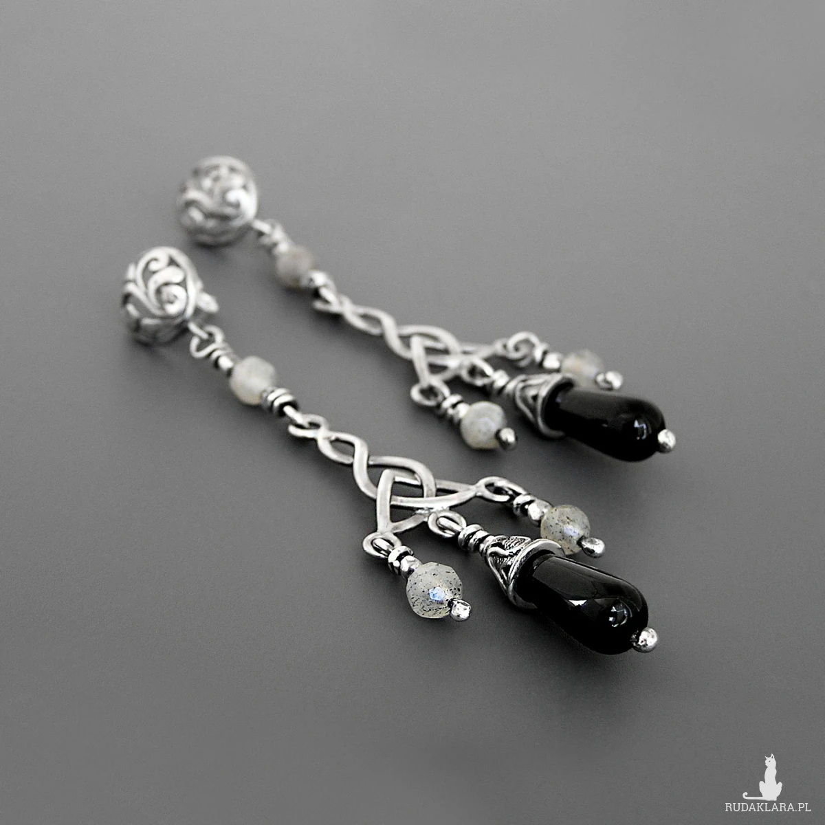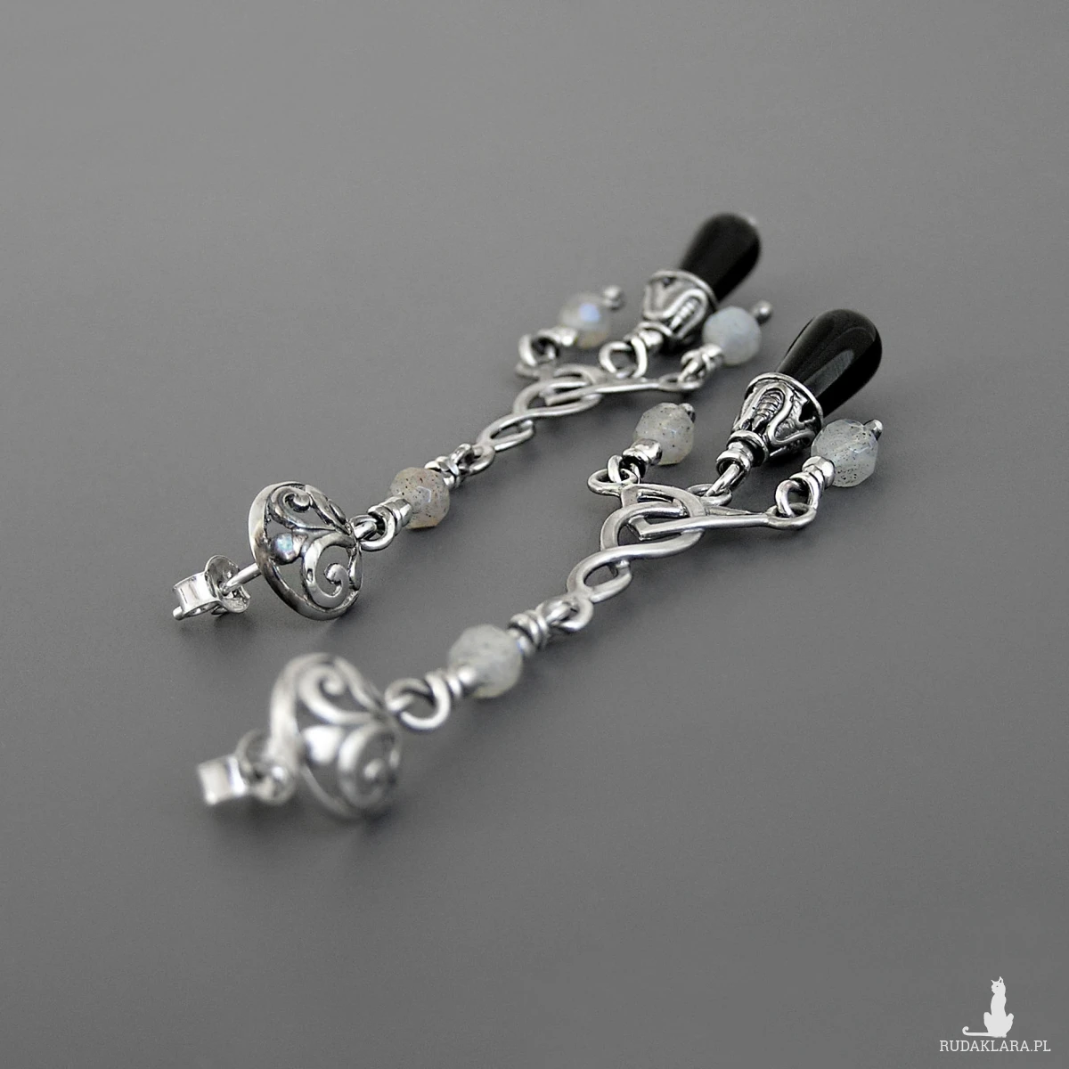 Kolczyki Scarlett, krople onyksu i labradoryt, srebro, kolekcja Przeminęło z Wiatrem