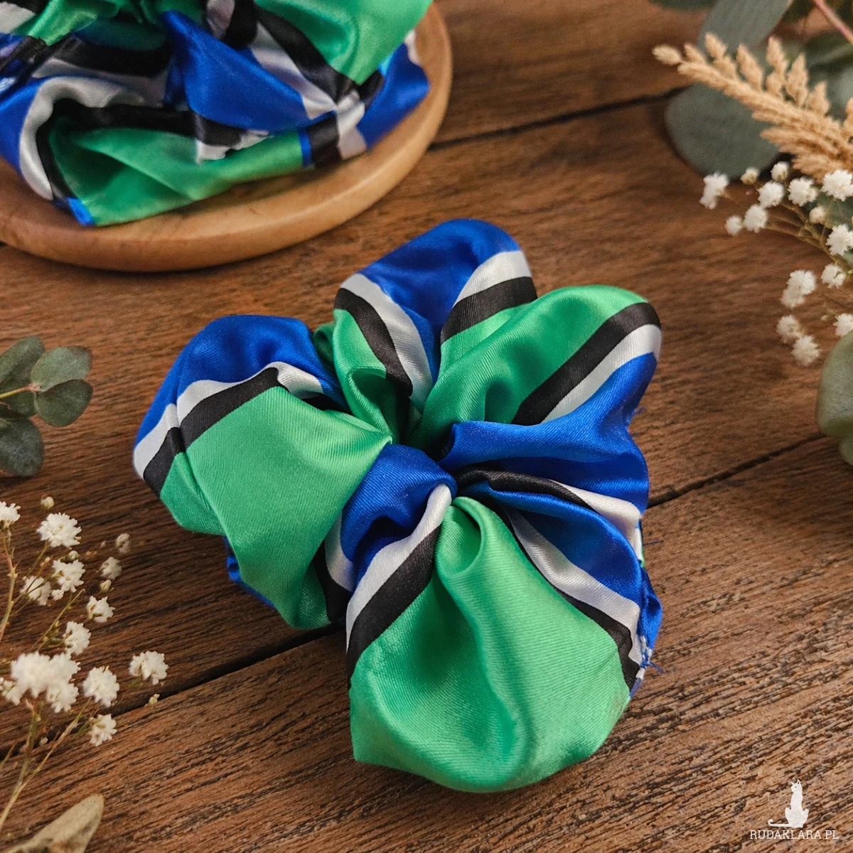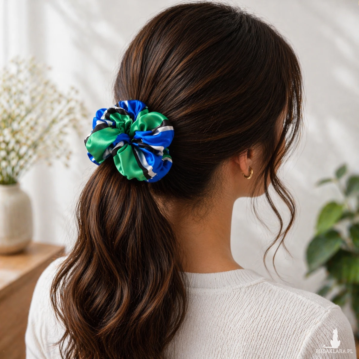 Satynowa gumka do włosów w piękne wzory to elegancki i praktyczny dodatek, który zadba o Twoje włosy każdego dnia. Wykonana ręcznie z delikatnej, gładkiej satyny, jest przyjazna dla włosów – nie ciągnie, nie łamie i nie powoduje odgnieceń, podobnie jak jedwabne akcesoria.