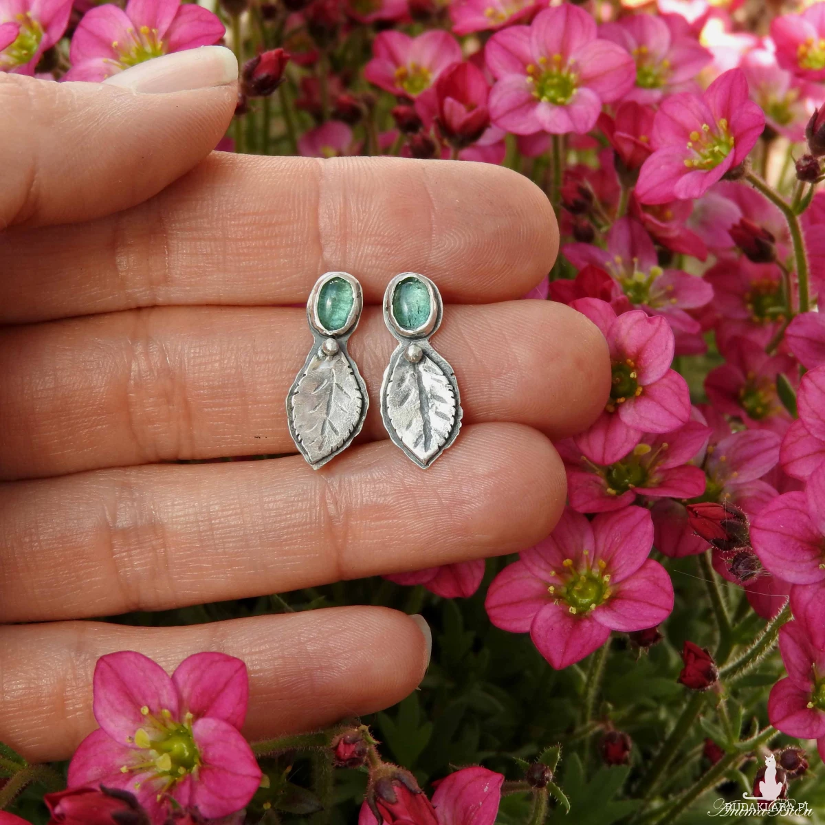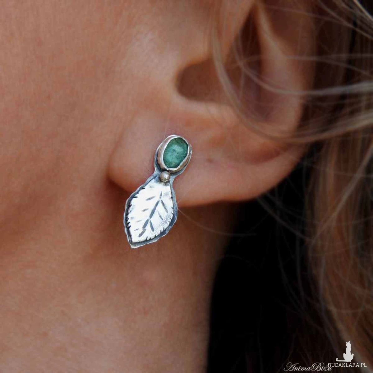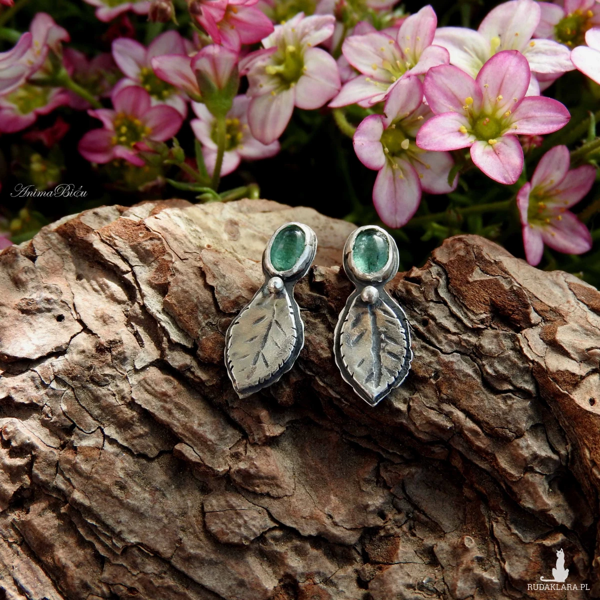 kamieni umieściłam srebrne, rzeźbione listki i kuleczkę. Długość kolczyka