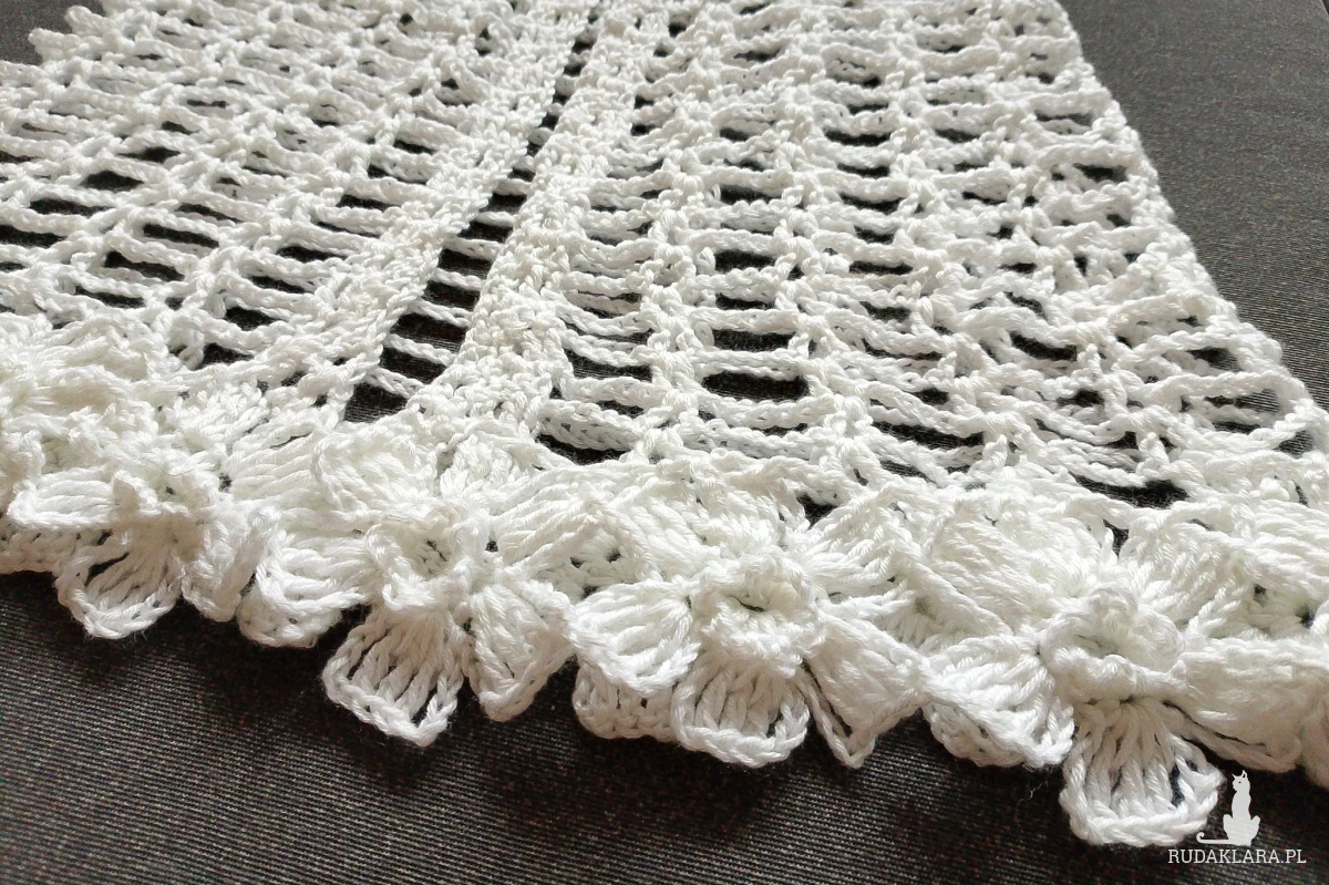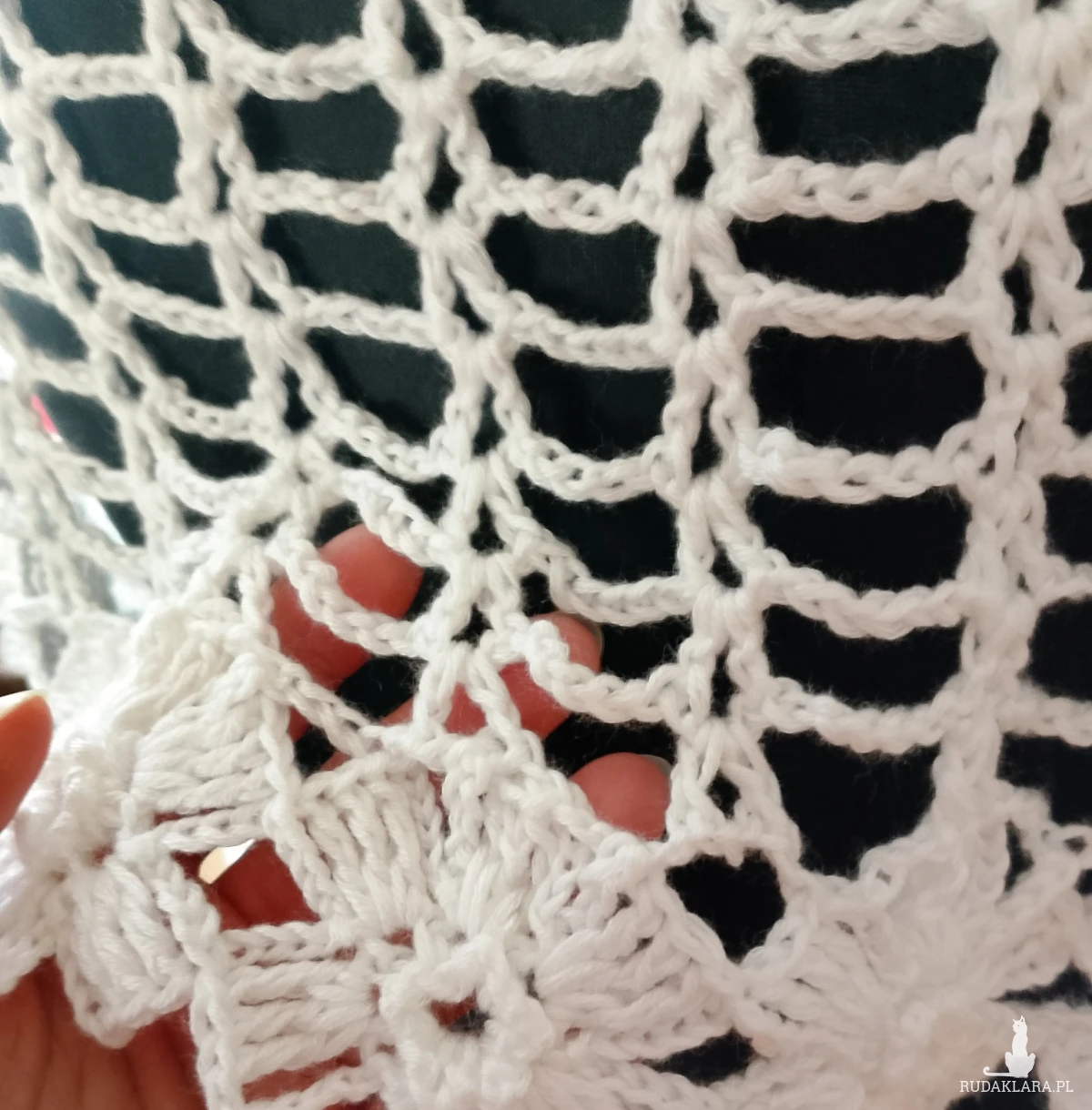 się przez palce i jedwabiście gładkiej. Zakończona pięknymi szydełkowymi