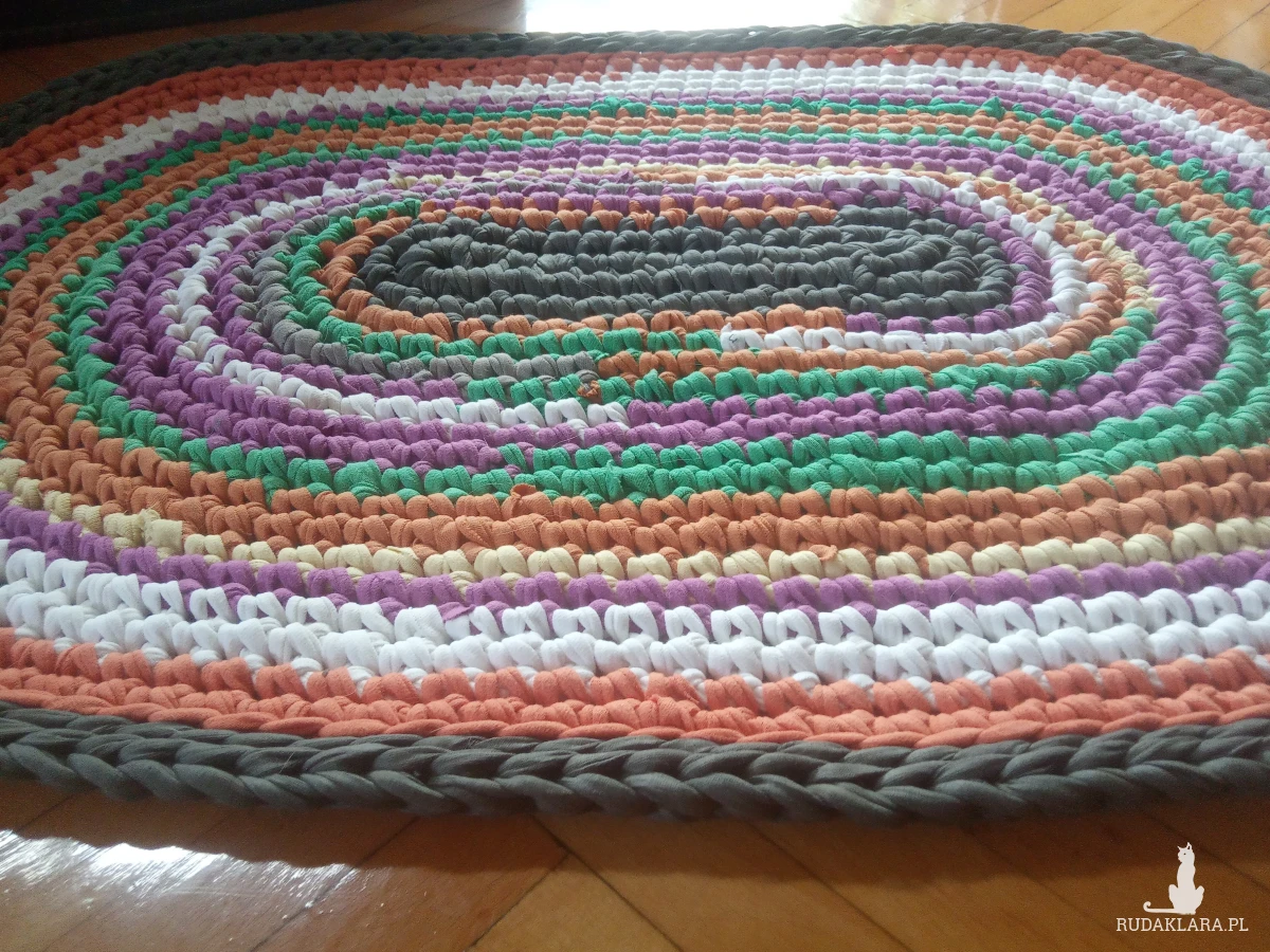 Dywan Eco-Etno Zero Waste, wykonany ręcznie z pociętych w paski