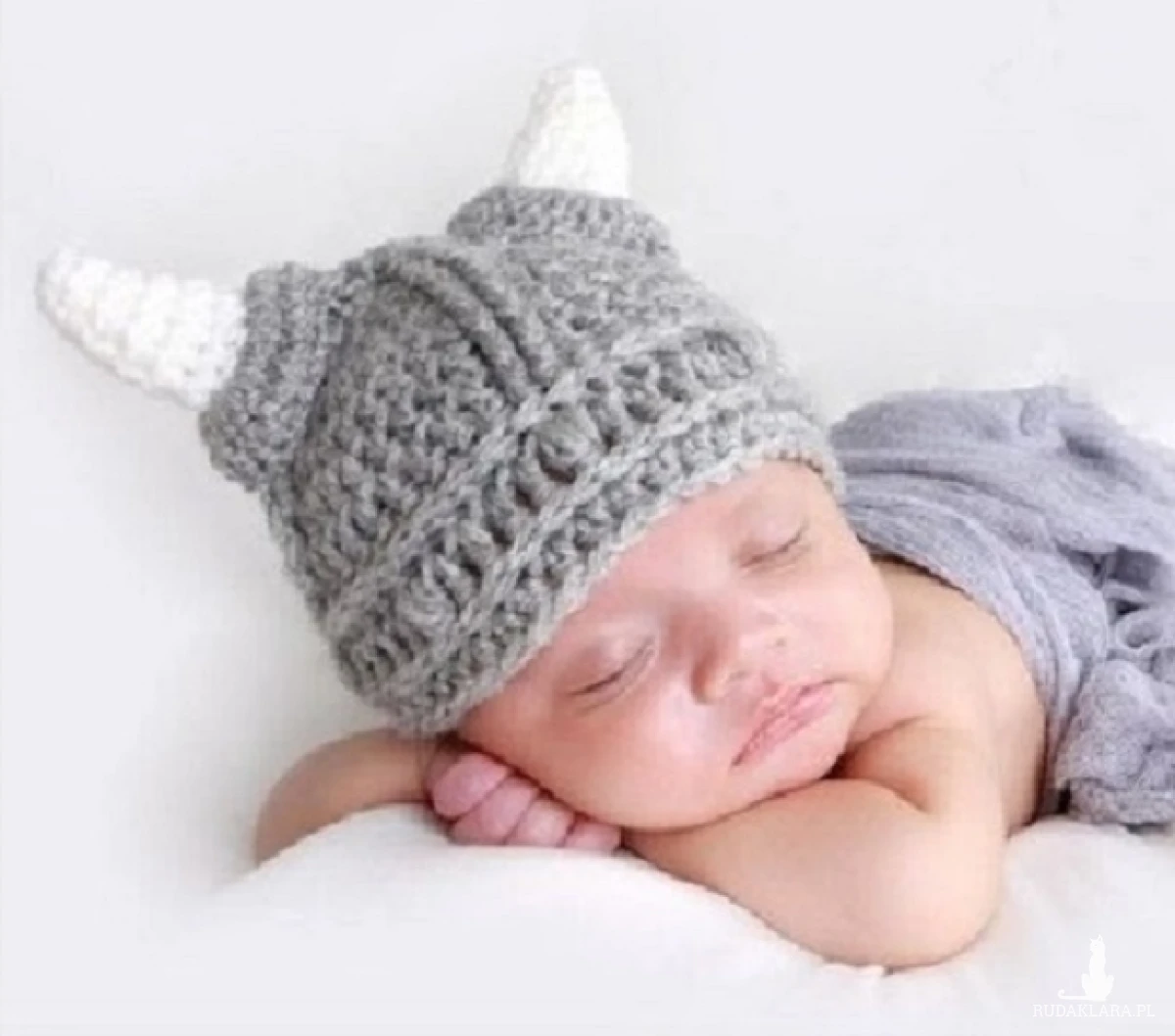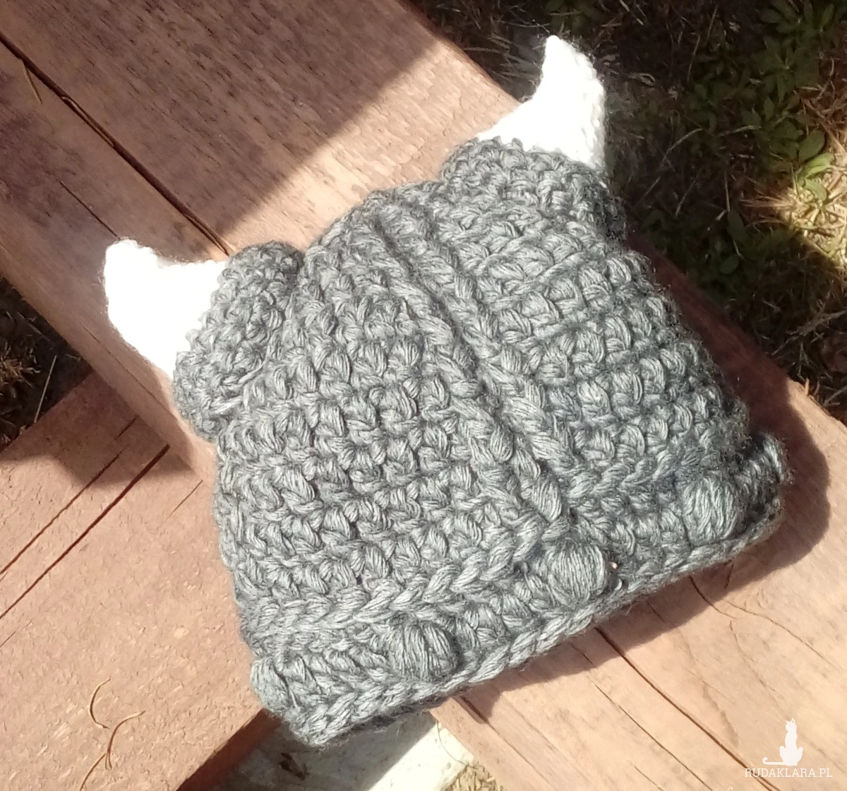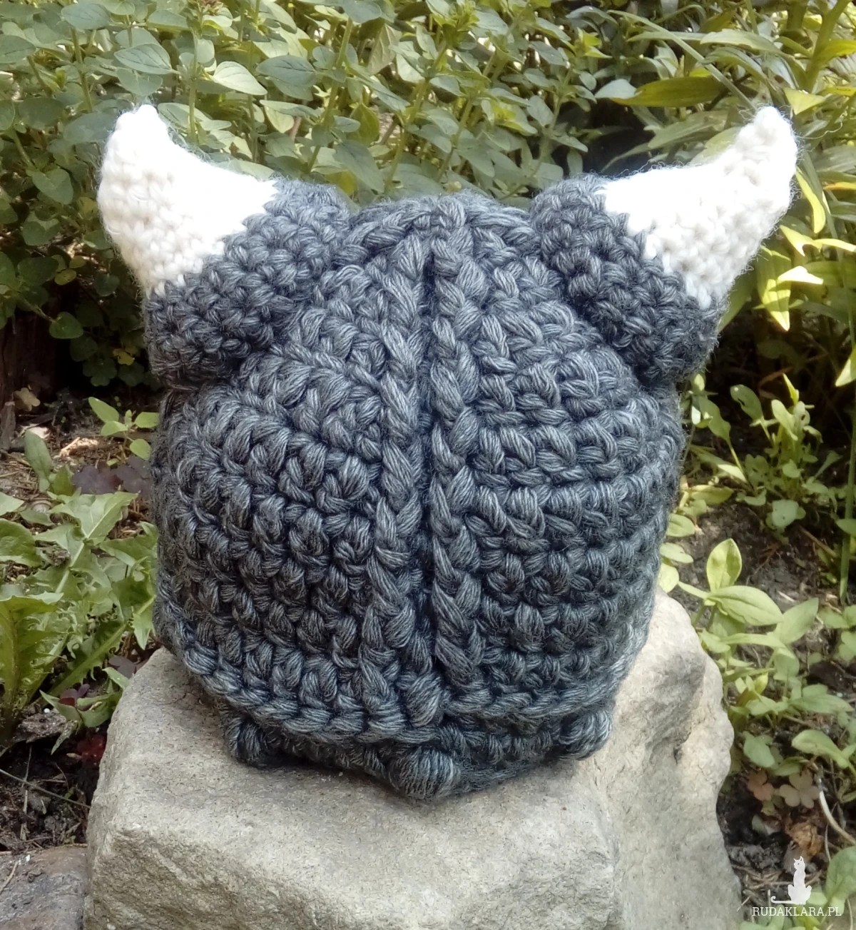 Czapka "Viking" inspirowana hełmem wikingów, wykonana z dbałością o szczegóły. Włóczkowy hełm i groźne rogi wzbudzą należyty respekt;). Doskonały i oryginalny prezent dla dziecka. Czapka na pewno będzie często noszona nie tylko w chłodne dni, ponieważ dziecko z pewnością chętnie użyje jej również jako rekwizytu dla swoich zabaw. Czapkę można także wykorzystać do sesji fotograficznej.