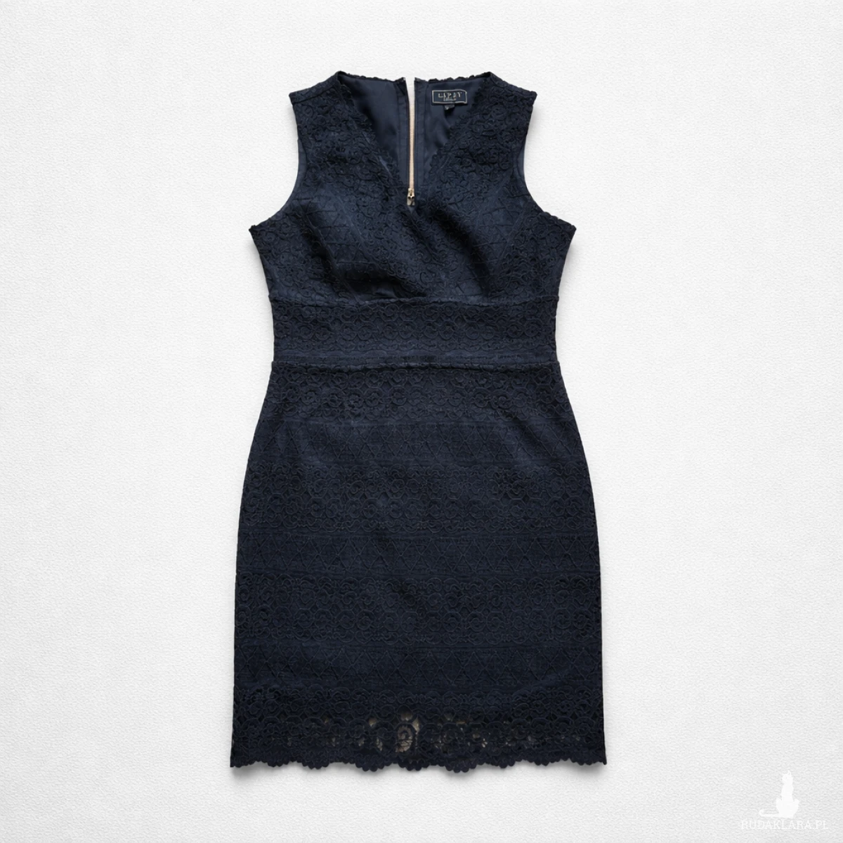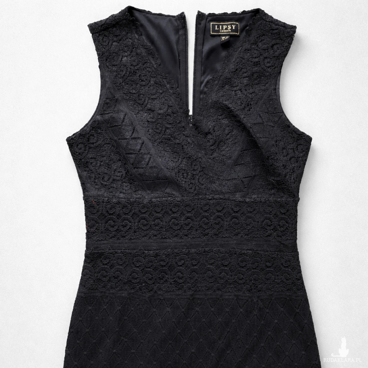 Czarna koronkowa sukienka rozmiar 40 długość całości 100 cm odległość pH pacha na płasko 48 cm pod biustem 41 cm biodra na płasko 50 cm przepiękna koronka sukienka na podszewce bardzo ładna