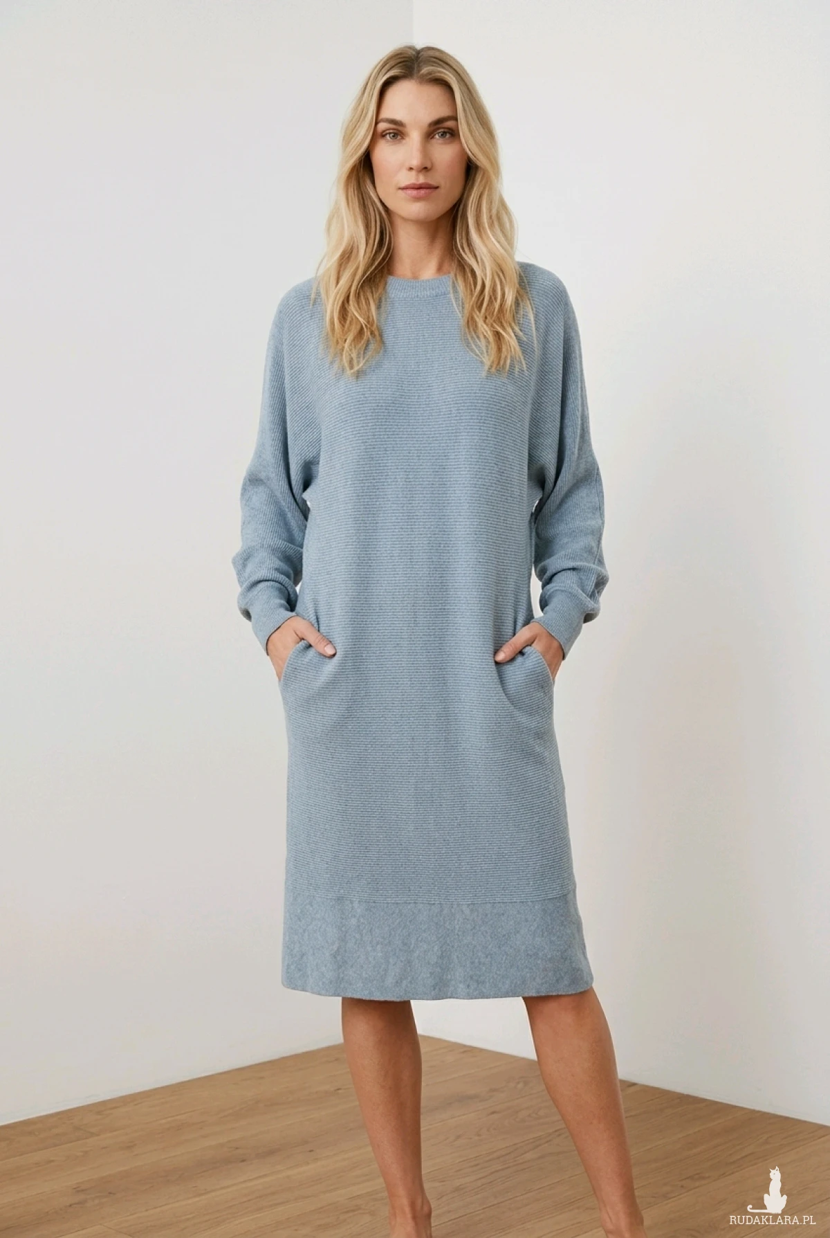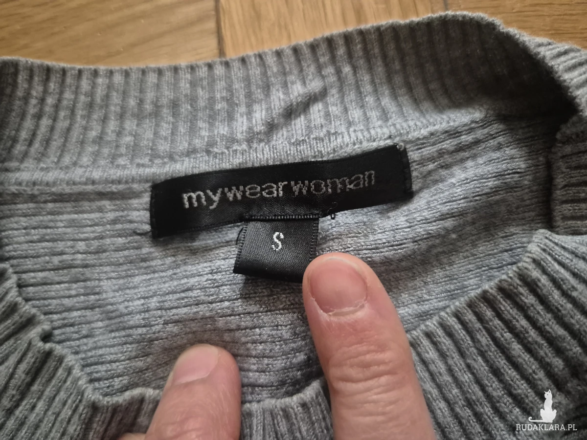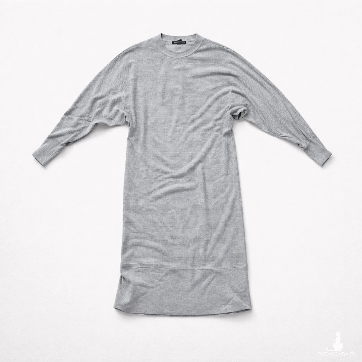 Szary sweter sukienka krój nietoperzowy na metce rozmiar S ale jest to m długość całości 124 cm firma Mywearwoman