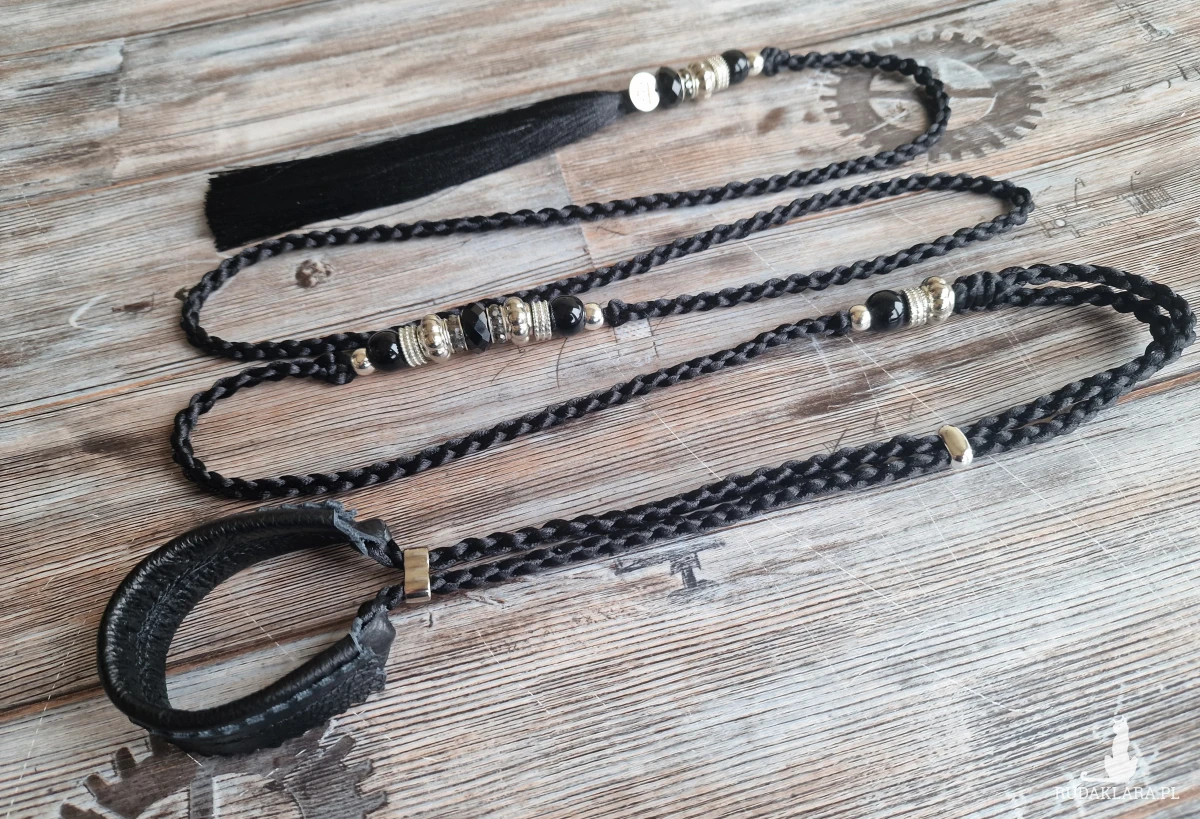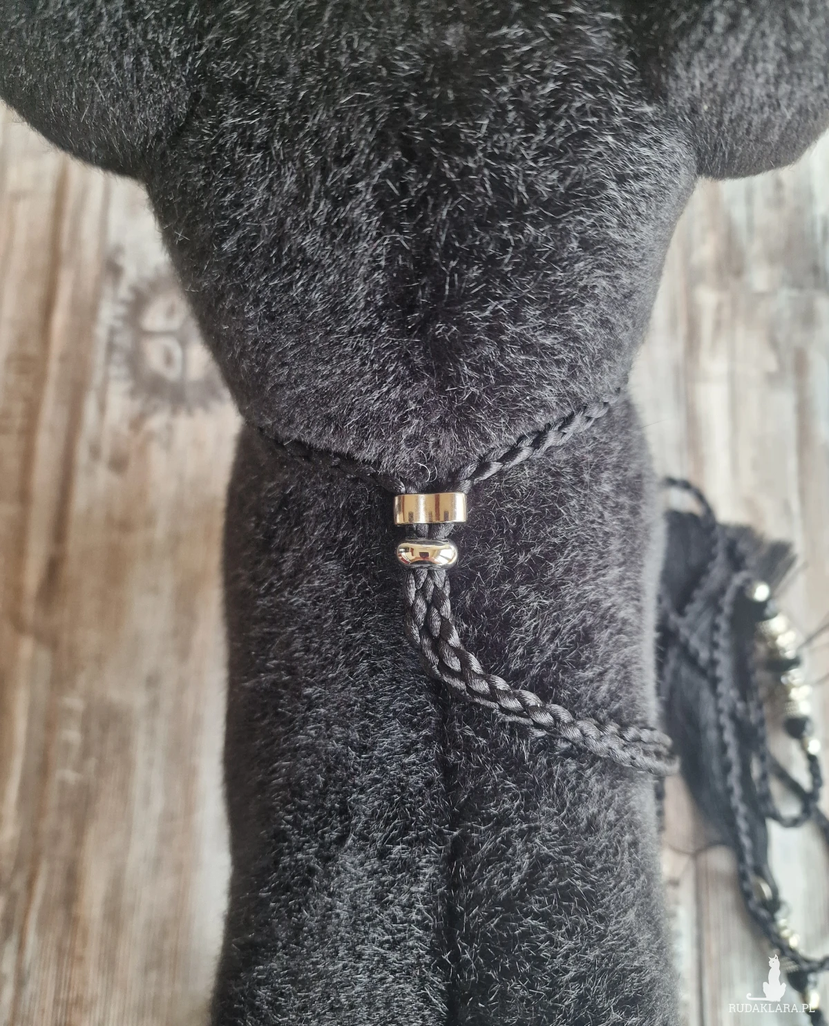 Smycz ringowa przeznaczona dla psów małych i średnich ras, wykonana ręcznie z satynowego sznurka , zdobiona pięknymi koralikami i efektownym chwostem.