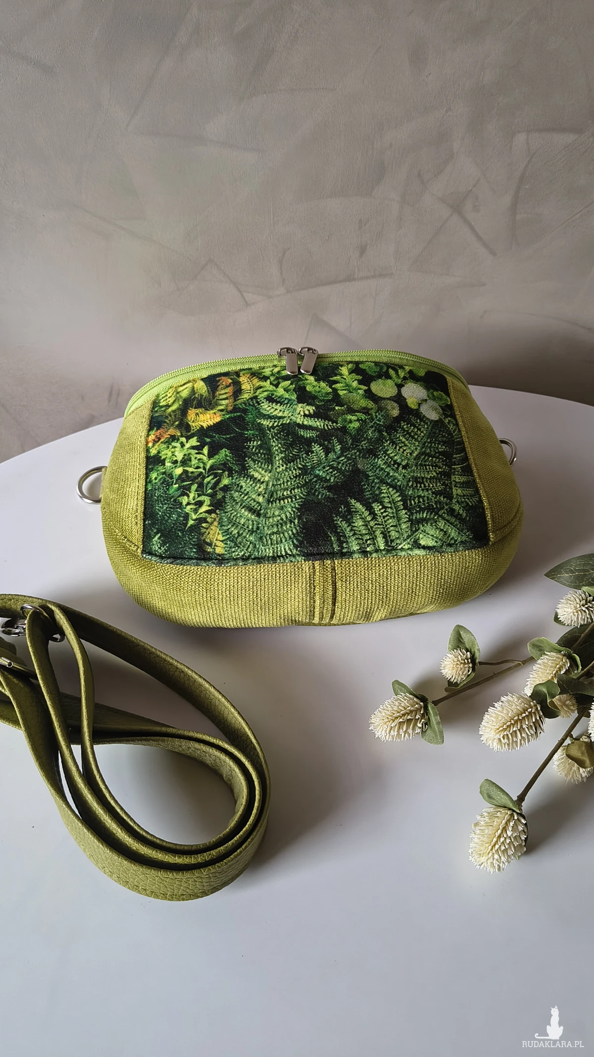 Ta torebka to mały kawałek natury, który możesz mieć zawsze przy sobie. Rożne odcienie zieleni i roślinny motyw wprowadzają spokój – jak spacer po lesie w środku dnia. Ta torebka to nie tylko dodatek, ale nastrój, który zabierasz ze sobą: