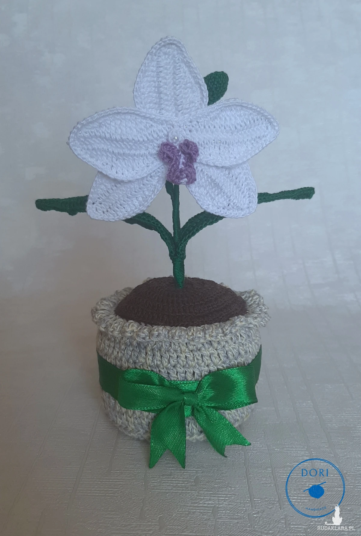 Moja szydełkowa orchidea w doniczce to połączenie delikatności kwiatka z unikalnym urokiem rękodzieła.