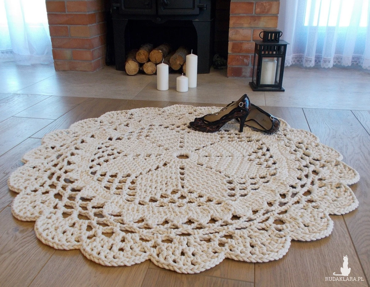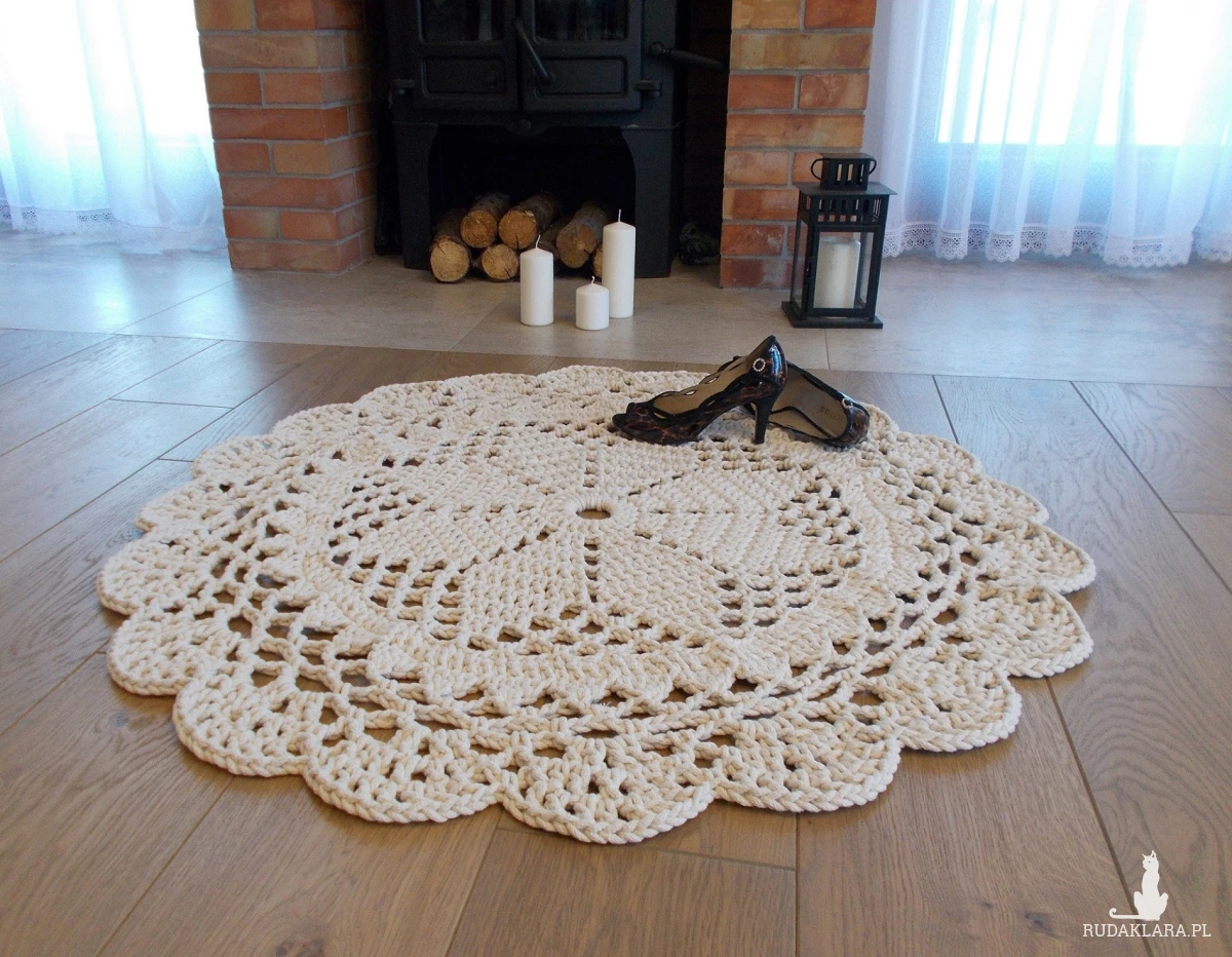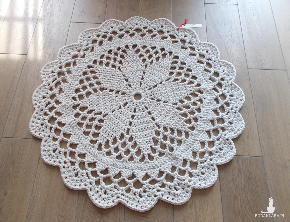 dwustronny. Średnica 110 cm, kolor ecru. Ozdobi każde wnętrze.
