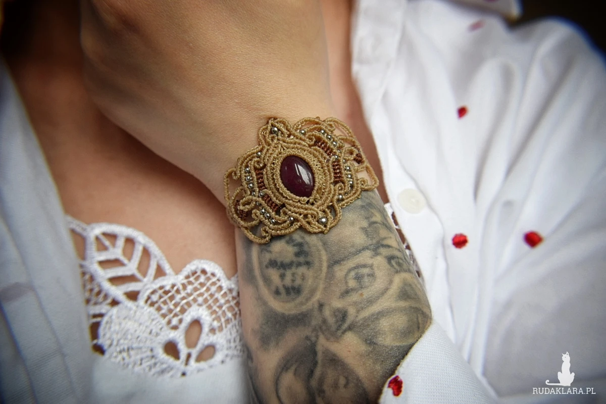 Sznurki boczne(regulacja) ok. 4,5x2 cm w tym zapięcie regulowane- makramowe