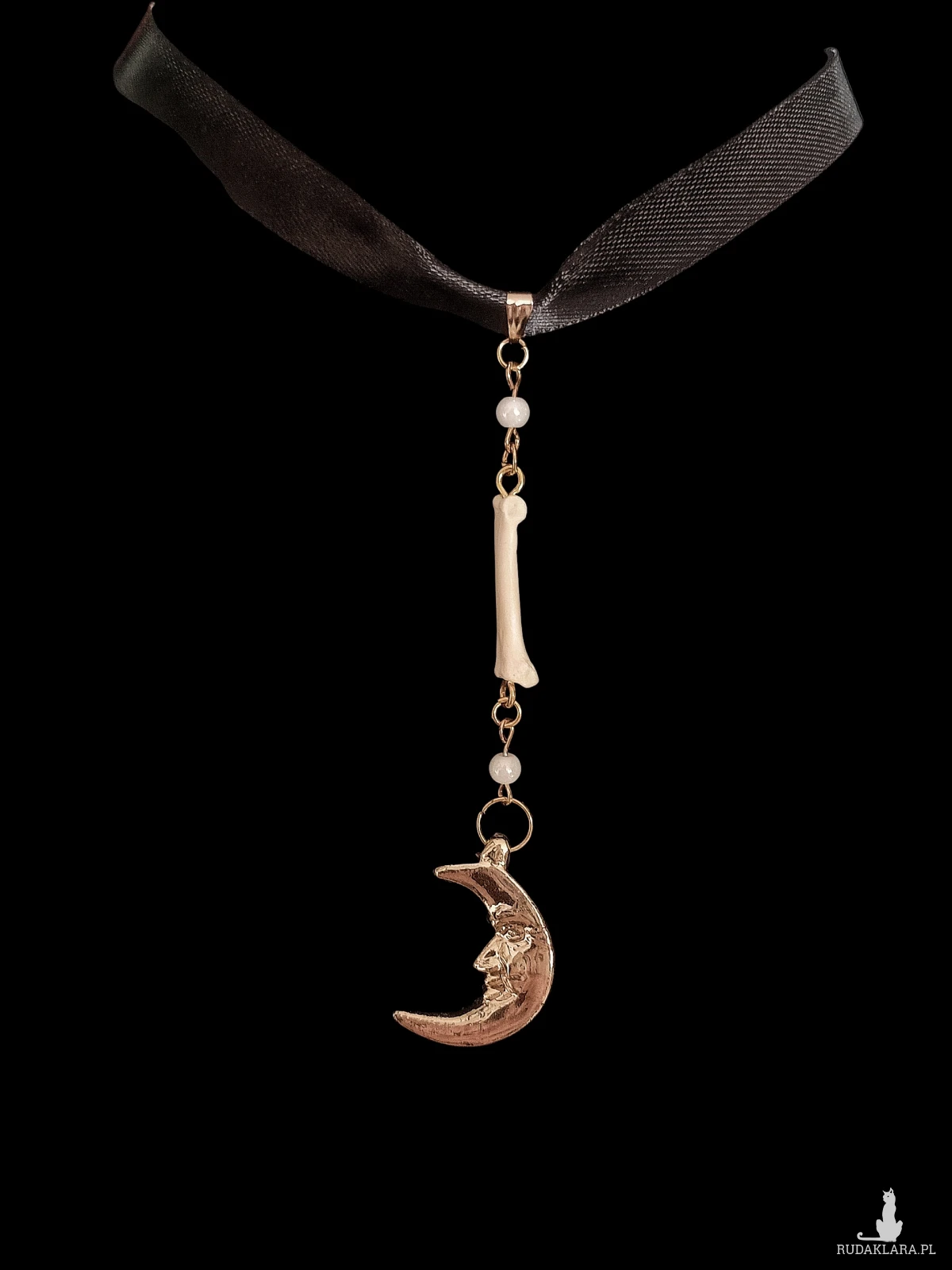 Regulowany choker z zawieszką w kształcie księżyca, kostką i perłowymi koralikami ✨